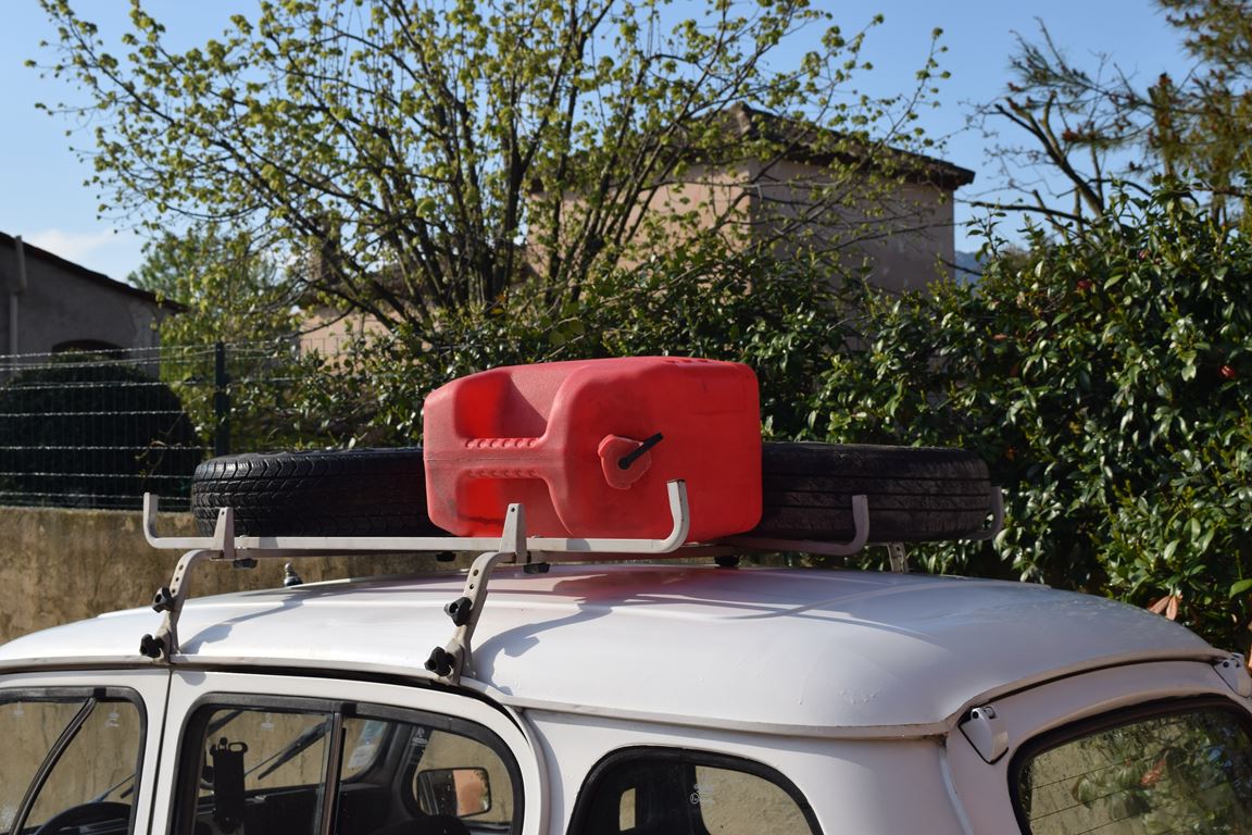 On ne mélange pas les torchons avec les serviettes. Ou plutôt ici, on ne mélange pas les pneus et les jerricans avec ses tee-shirts ! Vous avez compris l’idée : il est extrêmement désagréable d’avoir son sac de vêtements propres en contact dans le coffre avec le jerrican d’essence, les bidons d’huile, les roues de secours obligatoires… Nous en avons fait l’expérience. Le mieux étant donc de pouvoir séparer tout ce qui est “sale” et qui peut être mis à l’extérieur sur la galerie de toit et toutes vos affaires “propres” qui resteront dans la 4L.