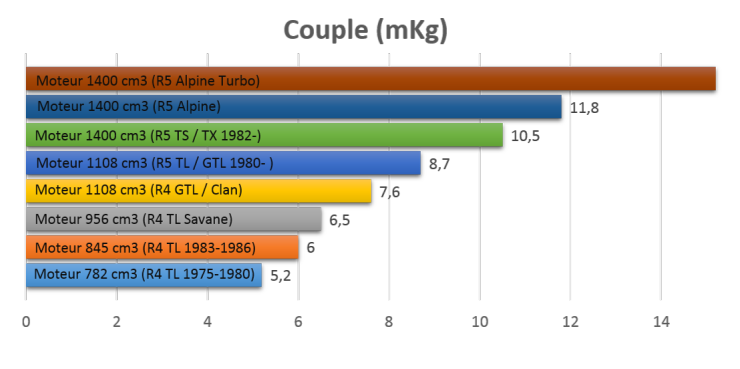 Plus de couple = moins de difficulté dans les côtes notamment ! Comme pour la puissance, un peu plus de couple n’est pas de trop sur une 4L… Les moteurs 1108 ou 1400 cm3 font là aussi largement l’affaire pour une utilisation normale ou pour les raids.