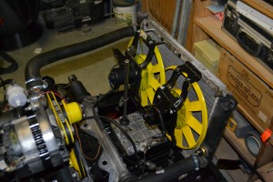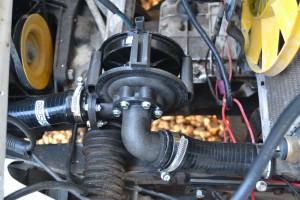Il s’agit d’une pompe à eau additionnelle que l’on rajoute sur le circuit de refroidissement, sur la durite en sortie de radiateur (en bas à droite), faisant la liaison avec la pompe à eau mécanique. Le mieux est de l’actionner à travers la sonde du ventilateur électrique, afin qu’elle se déclenche en même temps que lui lorsque la température de l’eau devient trop élevée. Le coût d’une telle pompe est assez élevé, mais c’est terriblement efficace et cela permet vraiment de fiabiliser votre moteur et améliorer son rendement.