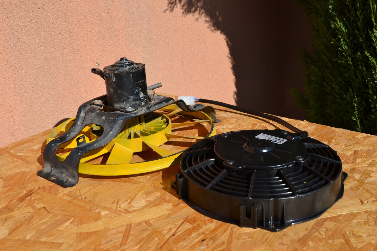 La 2ème solution est de monter un (ou deux!) ventilateur(s) dit(s) de “compétition” de type SPAL, beaucoup plus puissant(s), en lieu et place de celui d’origine. Il pourra être actionné automatiquement par la sonde de température mais aussi manuellement si on le souhaite avec un interrupteur. J’ai personnellement installé deux petits ventilateurs de type SPAL, et je peux vous assurer qu’en terme d’efficacité, cela n’a rien à voir avec le ventilateur d’origine.