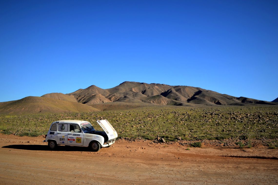 Pour notre part, les arrêts “capot ouvert” afin de laisser refroidir le moteur de la 4L en surchauffe ont été très nombreux durant le 4L Trophy, comme en témoignent ces quelques photos… Pour éviter ça, lisez cet article 🙂