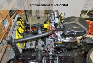 - Arrivé à une température comprise entre 75 et 83°C (selon les modèles), le calorstat se trouvant dans la durite en sortie de pompe à eau s’ouvre pour laisser le liquide de refroidissement circuler dans le radiateur d’eau.