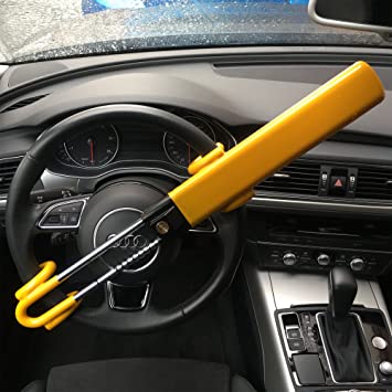 Ce sont les fameuses cannes antivol, généralement de couleur jaune, qui viennent bloquer le volant et/ou les pédales empêchant ainsi l’utilisation du véhicule.