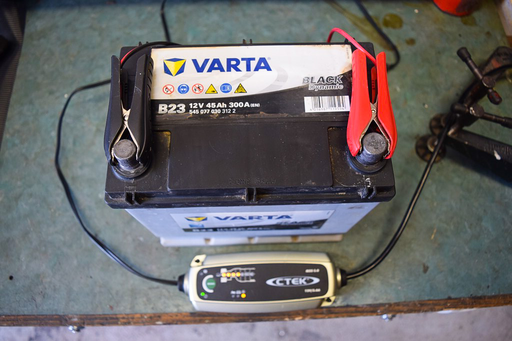 Afin de remettre en route sa voiture ancienne, il faut avant tout penser à la batterie. L’idéal est de laisser la batterie en charge durant toute la durée de l’hivernage. On utilise pour cela un chargeur avec un mode “entretien – hiver” de type CTEK. Dans ce cas, il suffira de reconnecter les bornes de la batterie aux cosses de la voiture à la sortie d’hivernage.