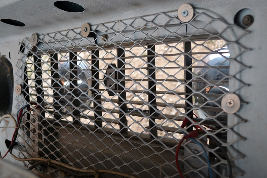La plupart du temps pendant le 4L Trophy, vous roulerez derrière un autre équipage, qui inévitablement produira des jets de pierres ou petits cailloux qui pourront endommager le moteur et surtout le radiateur d’eau, extrêmement fragile, qui se trouve juste derrière la calandre (sur les moteurs Cléon). Installer une grille de protection (ou du grillage), avec des mailles assez resserrées va permettre de le protéger de ces éventuels jets de pierres en assurant un barrage supplémentaire sans altérer la bonne arrivée d’air nécessaire au refroidissement. La grille est simplement fixée sur la face interne du capot à l’aide de vis à tôle et de grosses rondelles.