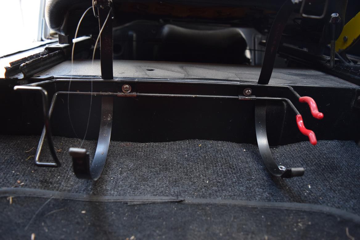 Eh oui, car les portes de la 4L ont la fâcheuse tendance à se refermer toute seule, ce qui est très peu pratique à bien des égards… surtout lorsqu’on en fait une utilisation intensive comme au 4L Trophy. Il existe pour cela des petits vérins que l’on fixe sur les 4 portes en remplacement des sangles d’arrêt d’origine. Ils permettent d’arrêter la porte mais aussi et surtout de les laisser ouvertes, comme sur une voiture moderne. C’est très facile à installer, et ça coûte moins de 20€ les 4…