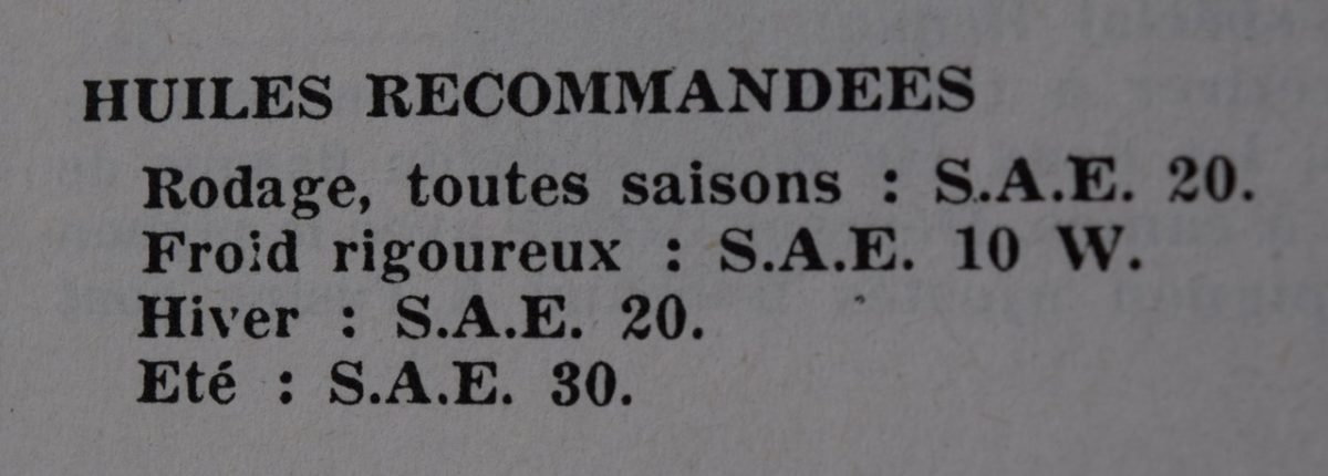Sur les notices des anciens véhicules avant guerre, il existe un “Tableau de graissage” qui fait référence à des huiles :