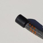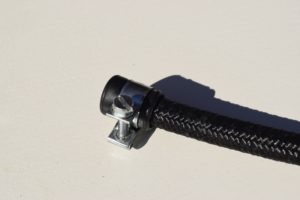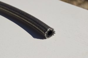 Note : ici encore, prenez garde à la qualité de la tresse extérieure : toutes ne sont pas qualitatives, loin s’en faut. Les tresses “bas de gamme” sont trop souples et trop fines et s’effilochent très rapidement. Une bonne tresse en fibre de qualité doit être suffisamment rigide et épaisse pour protéger et isoler le caoutchouc de la durite.