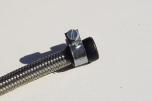 4°/ La durite caoutchouc avec armature inox + tresse extérieure inox