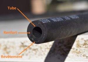 On distingue bien sur cette photo les 3 couches successives qui composent la durite.