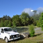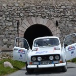 Petite pause photo à la place forte de Mont-Dauphin. La 4L avale les kilomètres sur les sentiers de montagne sans rechigner. Pourtant les conditions sont difficiles : ça grimpe dur, il pleut des cordes et certaines 4L s’embourbent… C’est embouteillage sur les pistes ! Malgré ça, on se régale, l’ambiance est au beau fixe et les sensations de conduite sur les pistes sont fabuleuses. On rejoint la station des Orres vers 15 heures où nous attend une nouvelle épreuve : un parcours entre plots, à l’aveugle. Les yeux bandés, le conducteur se laisse uniquement guidé par les instructions de son copilote… fous rires assurés :D. Une fois cette épreuve passée, la récompense : petite pause déjeuner dans une salle municipale des Orres.