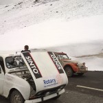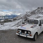 Départ pour cette 2ème journée du Red Bull Cocorico ! Avant de prendre la route, nous devons d’abord passer une épreuve de franchissement (facultative), une simple formalité pour la 4L Sortie de Grange ! On prend ensuite la direction du col de la Bonnette (plus haut col d’Europe à 2850 mètres) où nous attendent de magnifiques paysages enneigés. Malgré des températures en chute libre (moins de 5°C en haut du Col), l’exercice est difficile pour les 4L qui ont tendance à chauffer lorsque le dénivelé est important et que l’allure est faible. Les 2CV n’ont pas ce problème ! On laisse donc refroidir notre R4 et on en profite pour faire une petite pause photo et contempler le superbe paysage.
