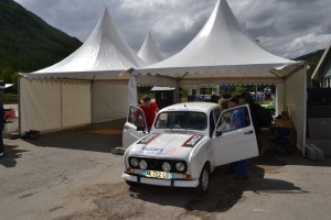 Après 3 heures de route au départ de Marseille, nous arrivons au fameux Circuit des Glaces de Serre-Chevalier, connu notamment pour accueillir le Trophée Andros, et transformé pour l’occasion en village départ. Passage rapide aux vérifications techniques, qui se déroulent sans encombres, puis aux vérifications administratives pour récupérer notre “permis d’aventure”, notre plaque rallye et les autocollants à poser sur les portières de la 4L. Comme vous pouvez le constater, la pose d’autocollants est une passion chez nous, on prend ça très au sérieux 😀