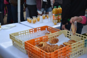 Lendemain matin, réveil à l’aube pour le petit déjeuner dans le centre de Briançon, à l’entrée des fortifications de Vauban. Accueil très chaleureux par l’office du tourisme de la ville qui nous sert croissants, café, jus d’orange, pour bien démarrer la journée, le tout ambiancé de musique. Une fois tous les équipages bien réveillés et rassasiés, on se réchauffe tous ensemble en bougeant devant le DJ avant le départ officiel du Red Bull Cocorico ! On en profite également pour prendre connaissance du road book.