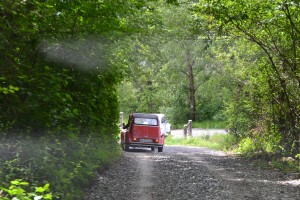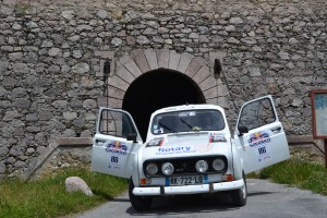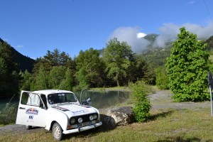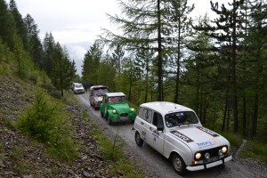 Petite pause photo à la place forte de Mont-Dauphin. La 4L avale les kilomètres sur les sentiers de montagne sans rechigner. Pourtant les conditions sont difficiles : ça grimpe dur, il pleut des cordes et certaines 4L s’embourbent… C’est embouteillage sur les pistes ! Malgré ça, on se régale, l’ambiance est au beau fixe et les sensations de conduite sur les pistes sont fabuleuses. On rejoint la station des Orres vers 15 heures où nous attend une nouvelle épreuve : un parcours entre plots, à l’aveugle. Les yeux bandés, le conducteur se laisse uniquement guidé par les instructions de son copilote… fous rires assurés :D. Une fois cette épreuve passée, la récompense : petite pause déjeuner dans une salle municipale des Orres.