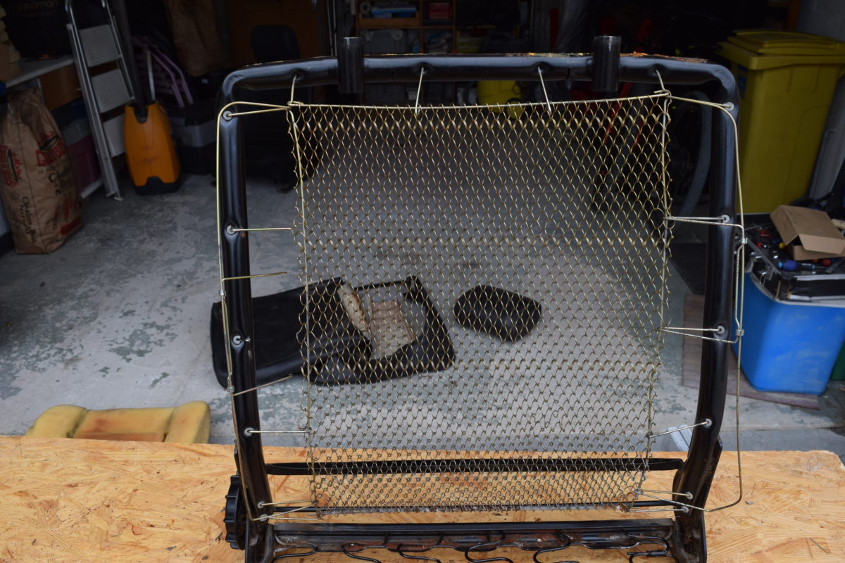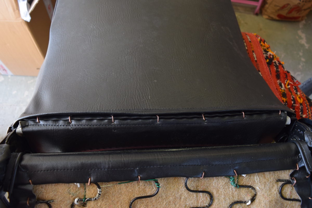 On passe maintenant à l’étape du remontage ! Dossier, mousses, garnitures neuves en simili… au boulot ! 🙂