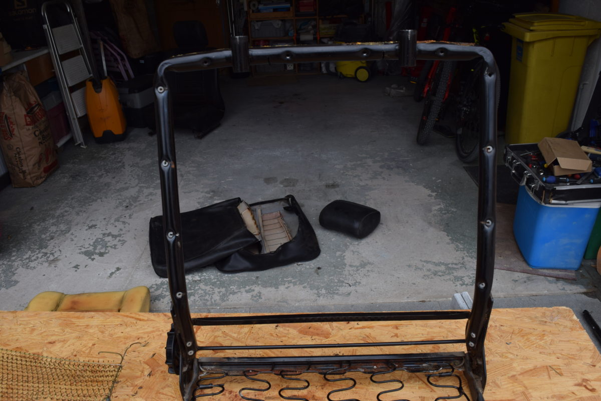 Ils n’étaient pas en parfait état, mais les mousses et la structure me paraissaient tout à fait corrects. Surtout, il s’agit des sièges qui équipaient les 4L après 1980 et possèdent donc un appuie-tête, ce qui est un atout sécurité non négligeable pour moi. Ils peuvent aussi s’allonger complètement à l’horizontal, ça peut toujours servir 😉