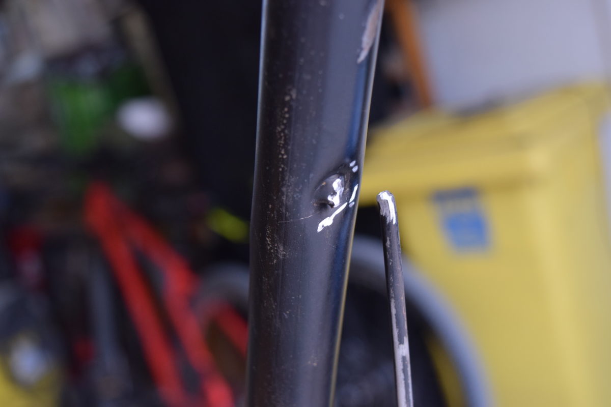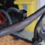 Comme vous le voyez sur la première photo, la barre horizontale se trouvant en bas du dossier est complètement déformée. Je redresse tout ça à l’aide d’un marteau et d’un tas de carrossier. C’est mieux non ?