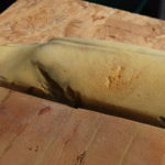 Prendre la mousse neuve et faire deux gabarit de forme avec du contre plaqué en prenant les cotes sur la vieille mousse, faire autant de gabarits qu’il y a de formes, les faire tenir avec des longues pointes piquée dans la mousse, et faire chauffer la scie, elle doit couper sans brûler et sans rougir, faire des essais avant, mettre une corde à piano plus grosse ou plus petite si besoin, puis avancer doucement mais surement ça coupe lentement suivant la dureté de la mousse. il ne faut pas “scier”, elle avance sans à coup.