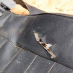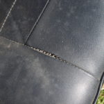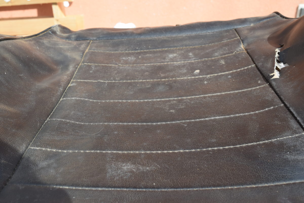 De loin, on pourrait se dire qu’ils ont simplement besoin d’un bon nettoyage… mais comme vous pouvez le constater en détails, il y a de multiples trous et déchirures sur le simili cuir. On va remplacer tout ça !