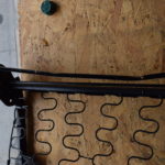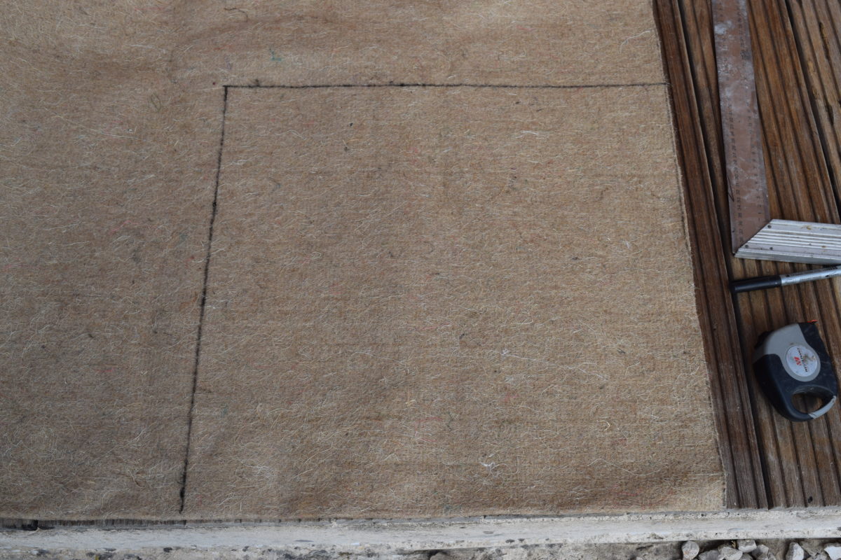 3. Comme je n’ai pas trouver de Feutre ou de thibaude pour mettre entre la mousse et les ressorts, j’ai mis une fine moquette 1er prix, qui a la particularité d’être la même matière moquette recto et verso et un peu plus rigide que de la thibaude. Je l’ai collé à la néoprenne, le top !