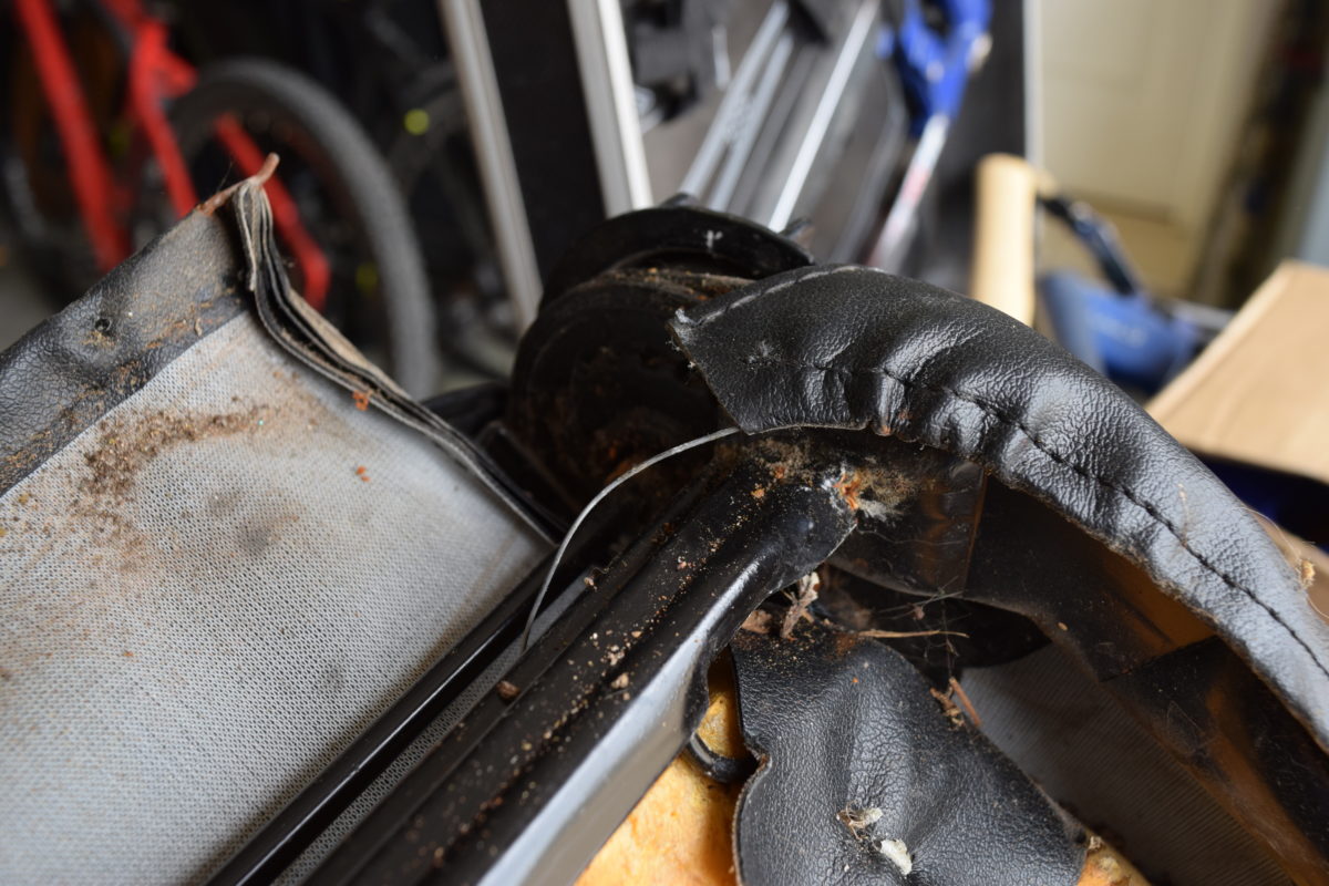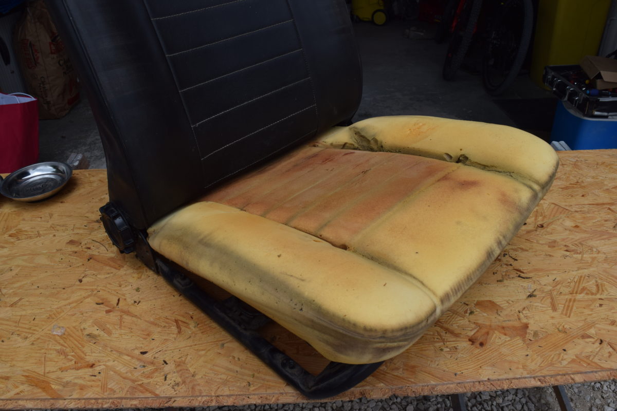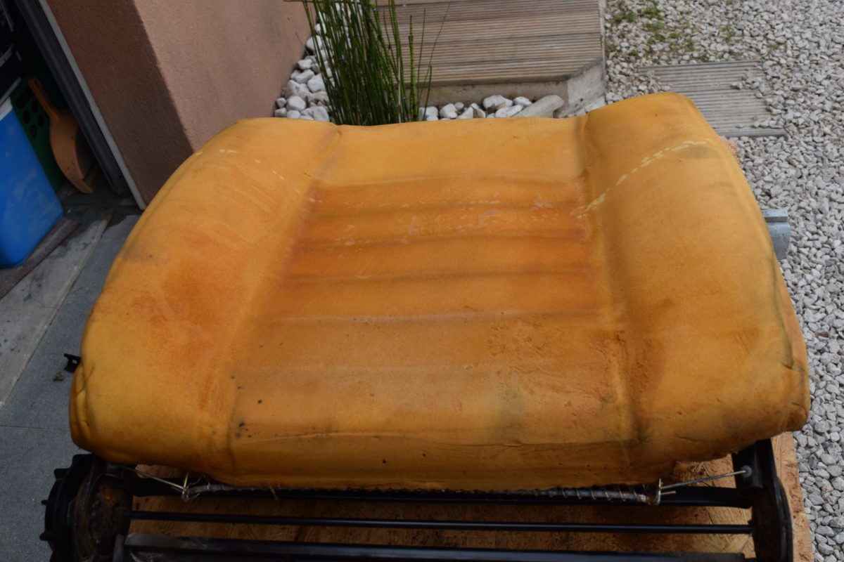 Les sièges ayant longtemps été stockés dans un abri, il semblerait que les rats en aient apprécié le confort… et les sièges ont donc une très forte odeur de fiente / d’urine animale. Les housses seront changées, donc pas de problème de ce côté-là, en revanche il va falloir nettoyer et désinfecter les mousses en profondeur pour faire partir cette odeur !
