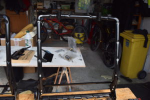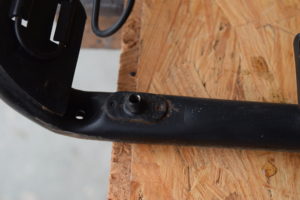 Comme vous le voyez sur la première photo, la barre horizontale se trouvant en bas du dossier est complètement déformée. Je redresse tout ça à l’aide d’un marteau et d’un tas de carrossier. C’est mieux non ?