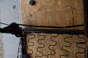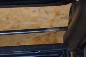 Comme on l’a vu précédemment, certains ressorts de la structure de l’assise se sont cassés avec le temps. Il va falloir les réparer pour rétablir une bonne assise. Mais il y a d’autres éléments de la structure à réparer : une tige à l’arrière du dossier qui permet de tendre la garniture qui a rompu ainsi que la barre horizontale en bas du dossier qui est elle complètement déformée.