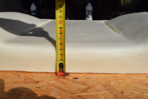 La mousse neuve est un peu plus épaisse (+/- 1cm) que celle d’origine mais l’avant de l’assise s’est clairement moins affaissé que l’arrière.