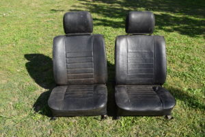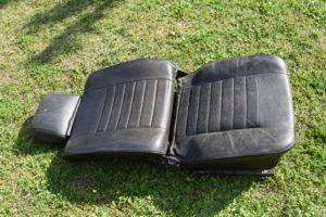 Je recherchais au départ une banquette arrière pour ma 4L qui n’en était pas équipée lorsque je l’ai acheté. Mais je voulais que la banquette ainsi que les sièges avant soient assortis, il me fallait donc trouver un ensemble complet assorti. J’ai trouvé ça chez un ami : une banquette arrière et deux sièges avant en simili cuir noir.