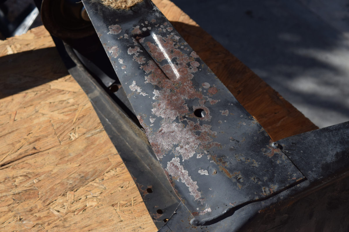 La rouille s’est bien installée sur le berceau. Pas de panique, ce n’est ici que de la rouille de surface.