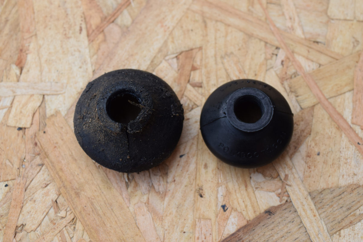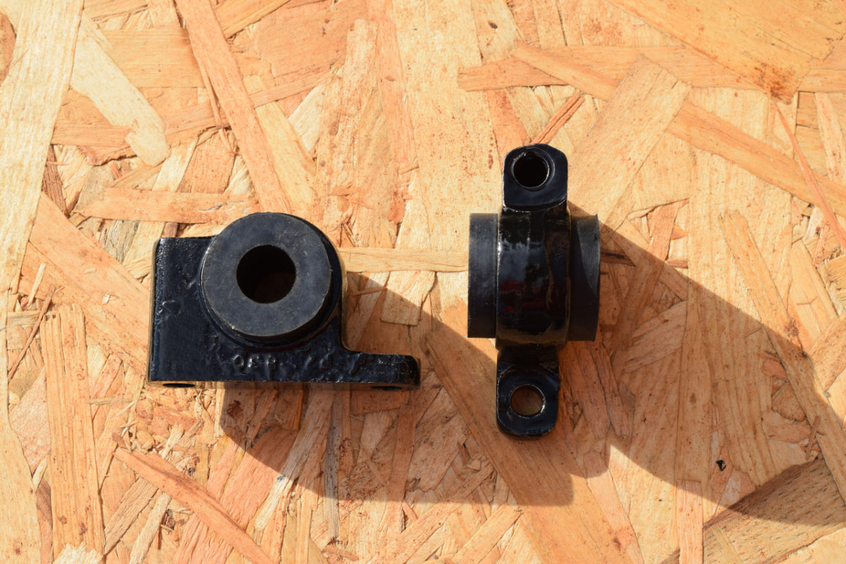 J’ai préféré utiliser des silentblocs en caoutchouc plutôt que les versions dites “Poly” en PU (polyuréthane). Le caoutchouc est certes moins résistant dans le temps et moins rigide que le PU mais il permet tout de même une bien meilleure absorption des chocs et des vibrations. Ce n’est pas un hasard si d’origine, le constructeur privilégie le caoutchouc au PU, ce dernier étant pourtant moins cher. Il faut avant tout privilégier les caoutchoucs de bonne qualité (d’origine si possible), qui possède la bonne dureté (ni trop rigide ni trop souple) et offre une bonne longévité.