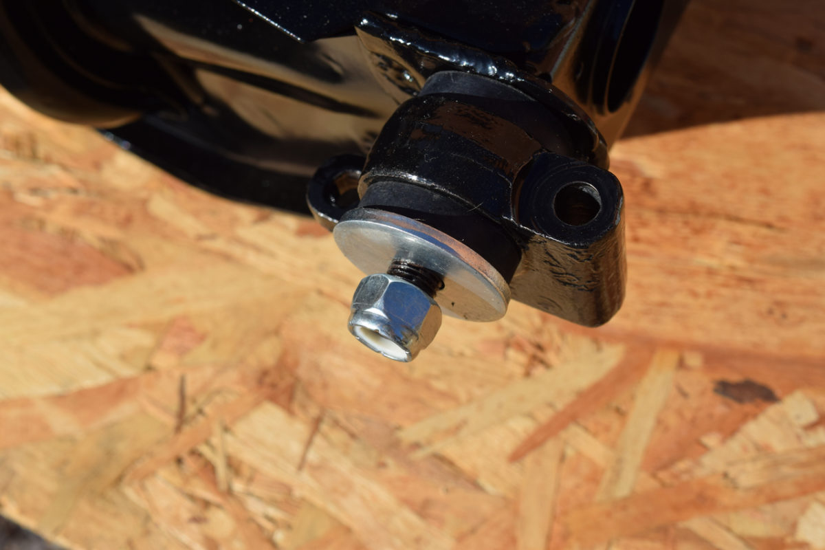Pose de la rondelle neuve et de l’écrou frein neuf (vendus avec les silentblocs).