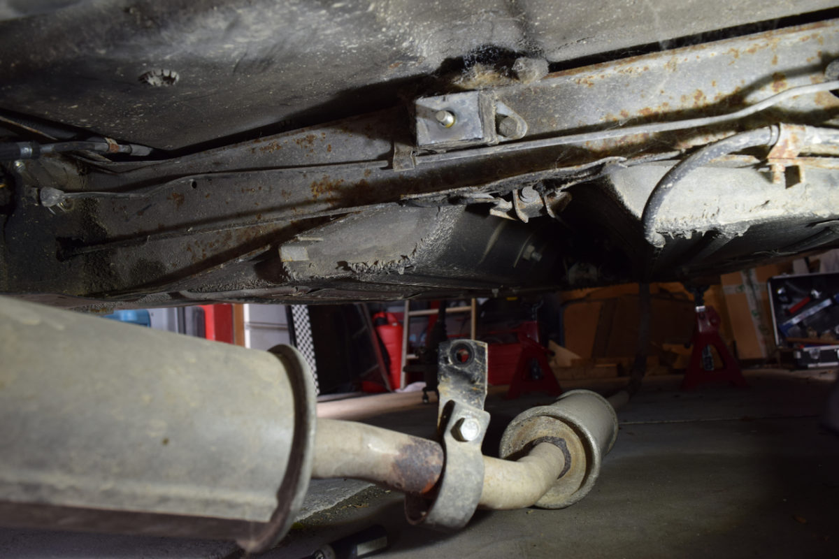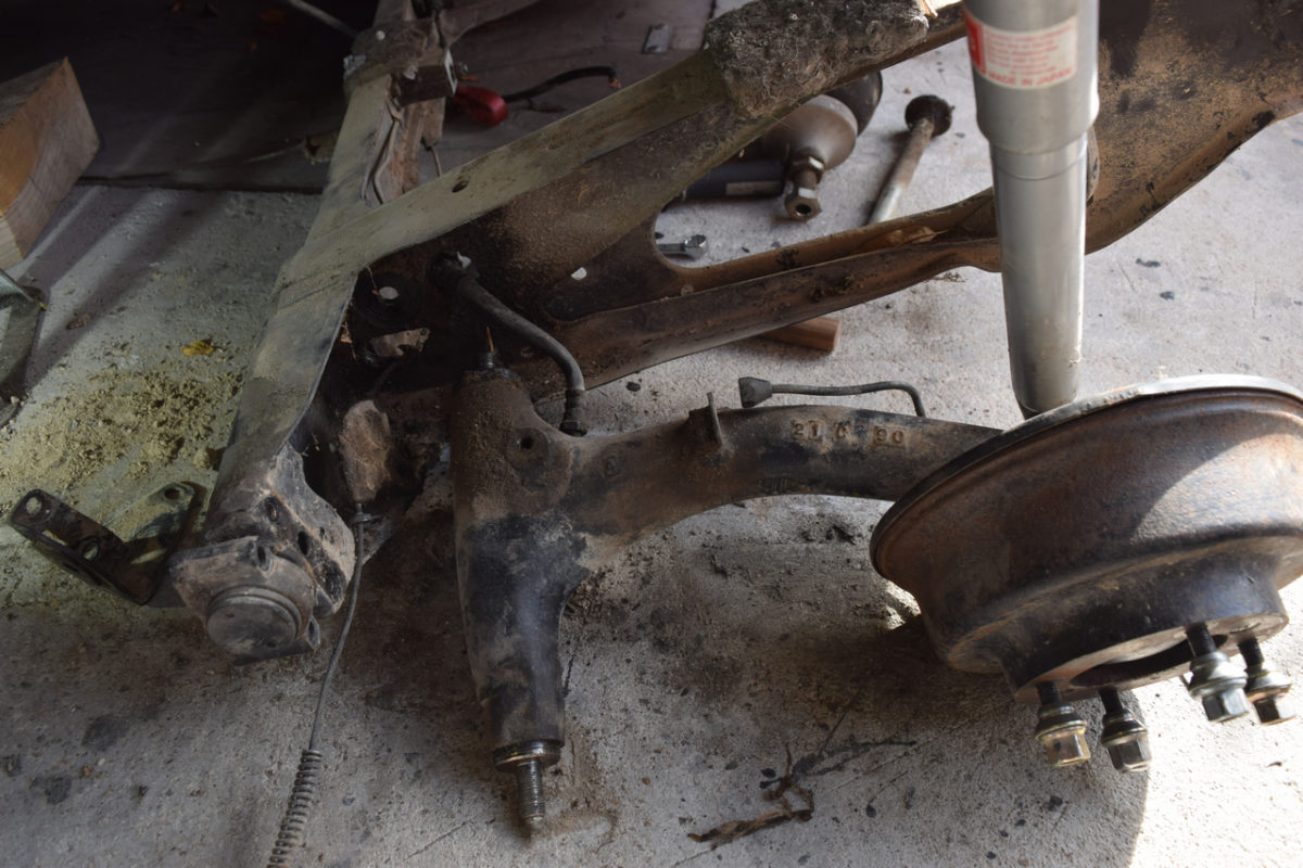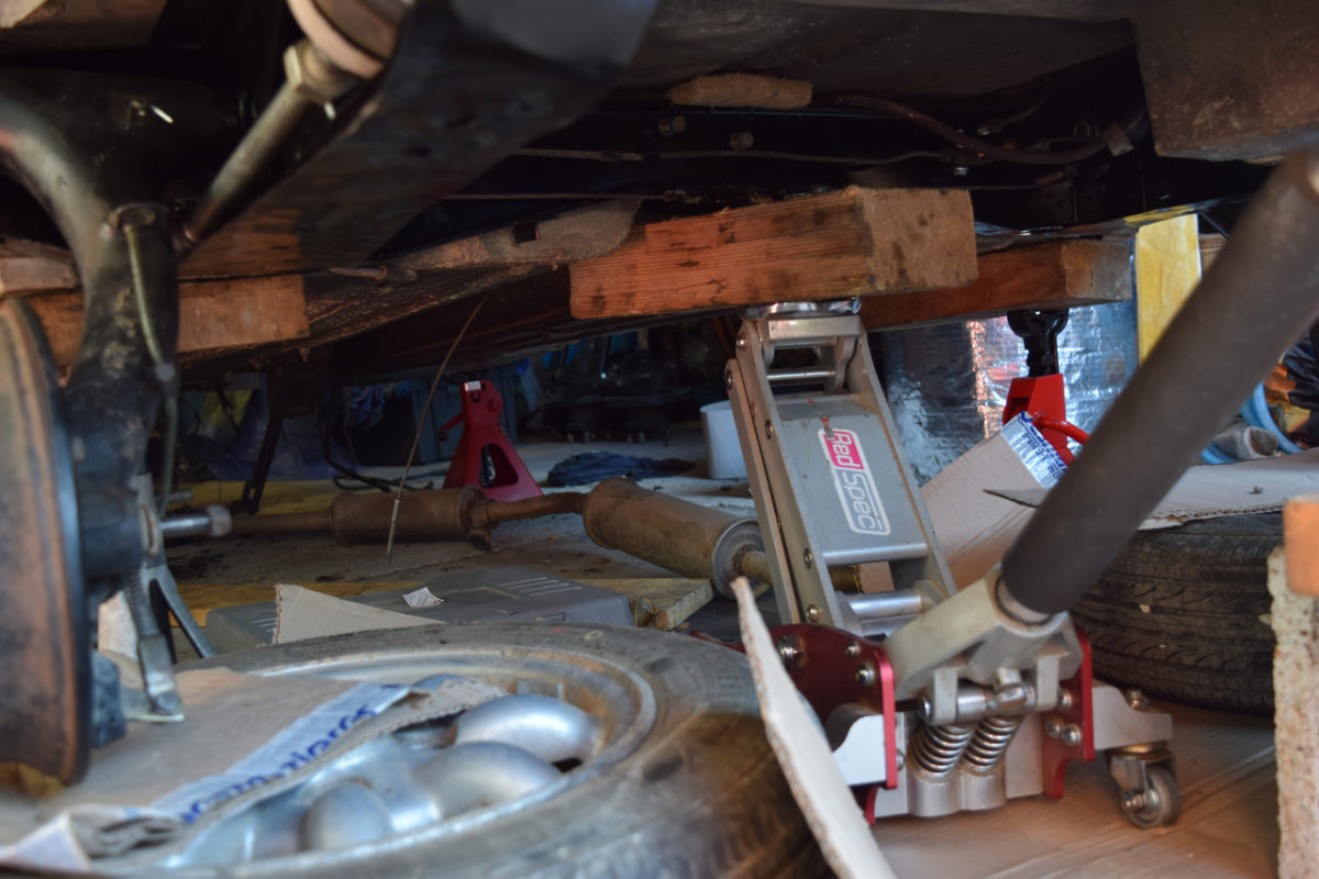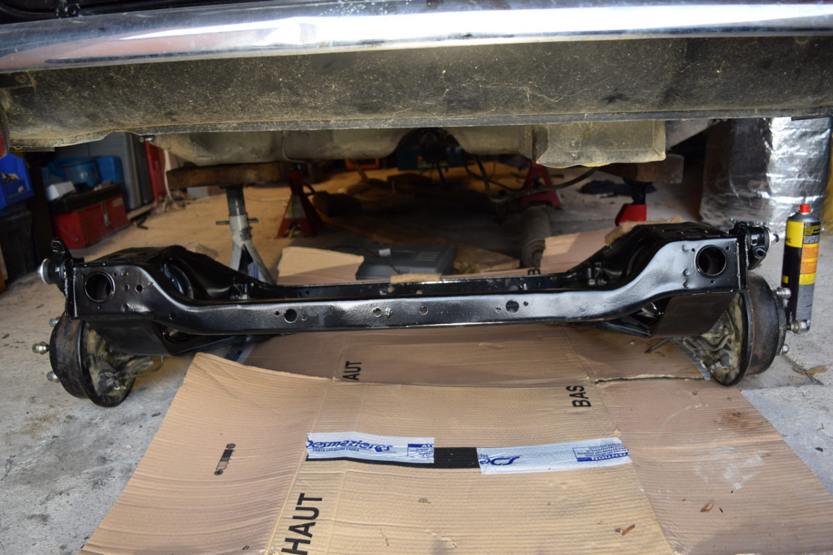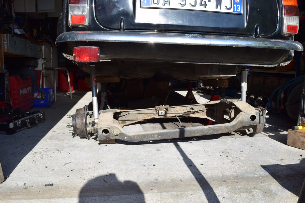 Voiture soulevée et posée sur chandelles, roues déposées, on peut maintenant s’attaquer au berceau.