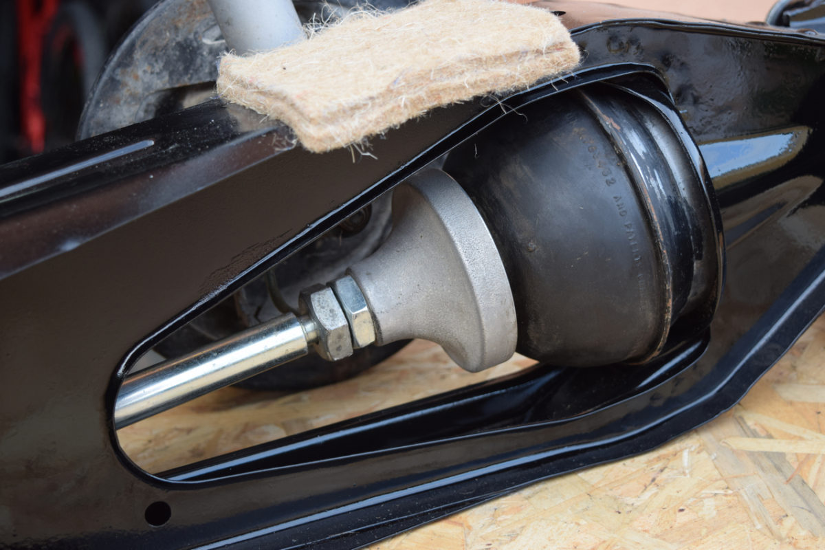 Mise en place de l’amortisseur sur le bras de suspension.