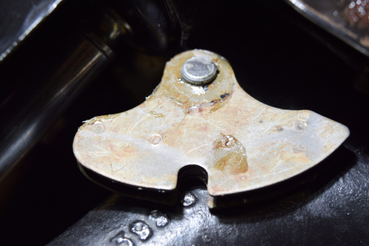 Insertion du support dans l’axe. Attention, ici il est monté à l’envers !