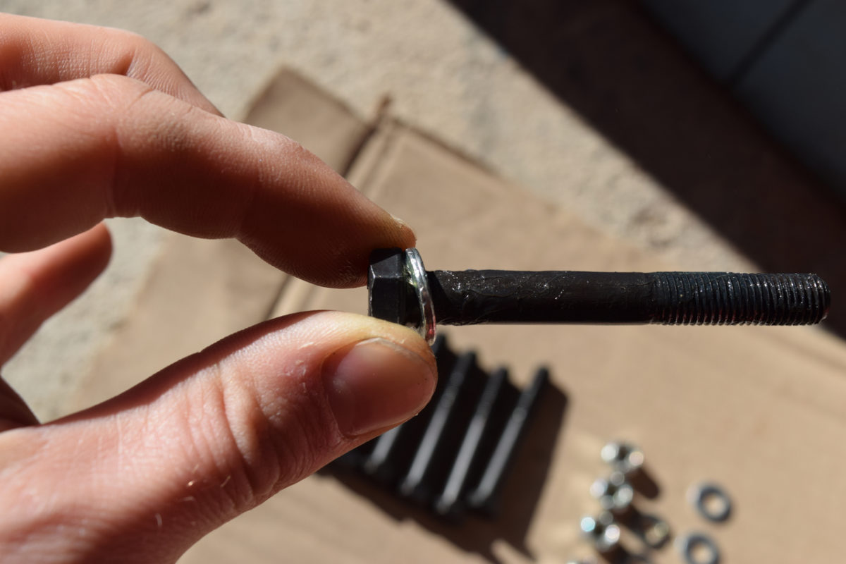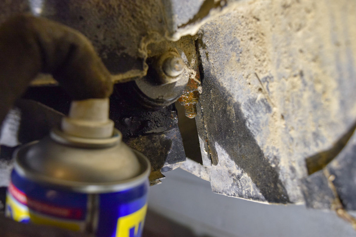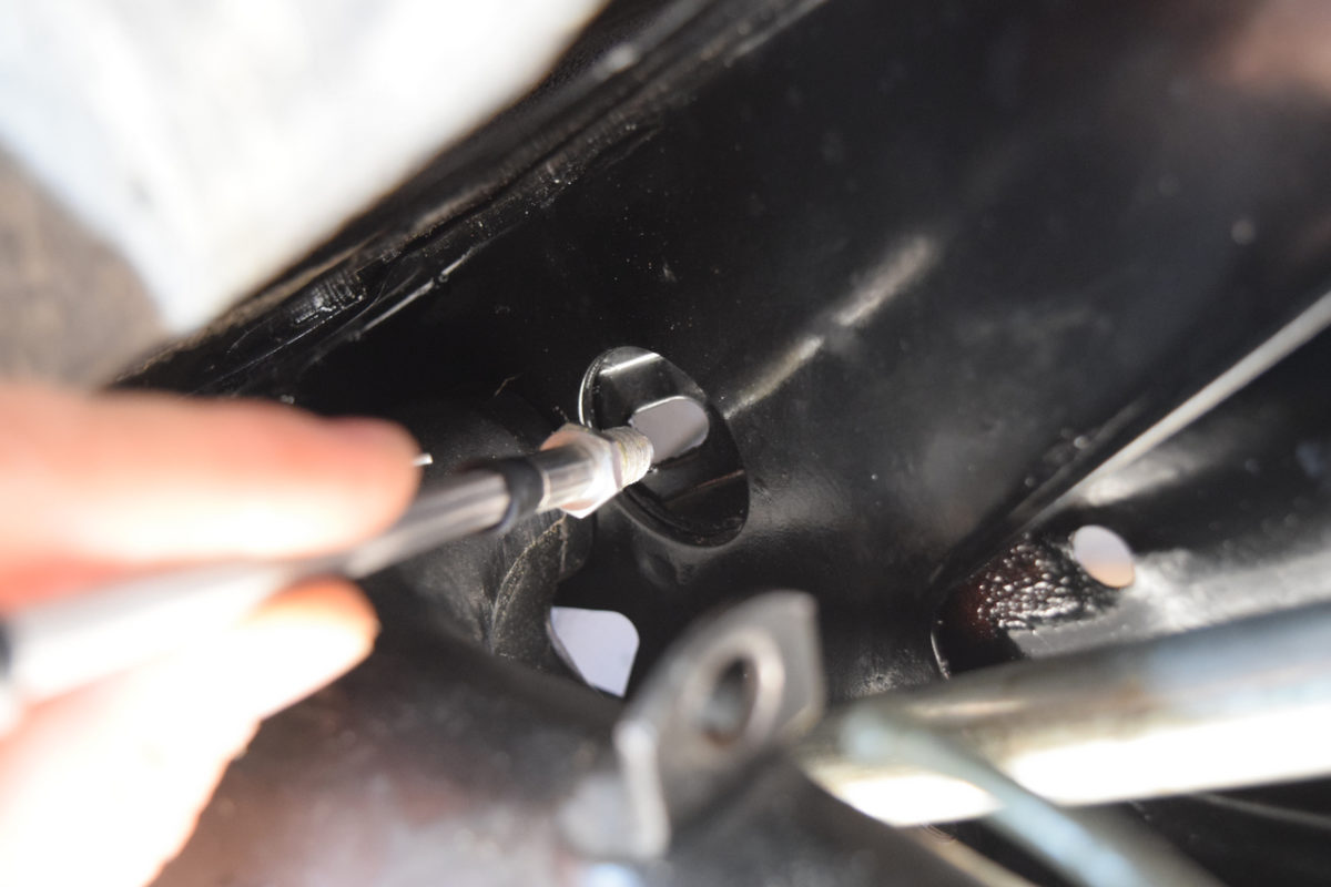 Je passe aux ancrages arrières maintenant. Graissage des vis.