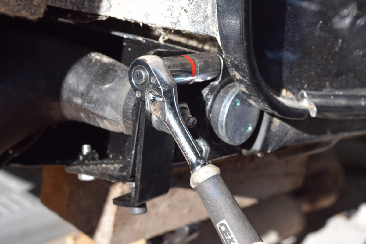 Serrage définitif des ancrages (silentblocs) avant et arrières sur le berceau.