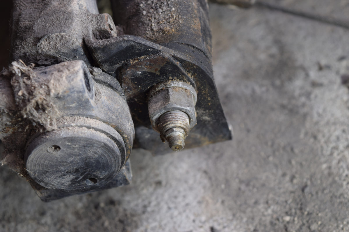 Dépose de l’écrou extérieur de l’axe de bras de suspension, avec son graisseur.