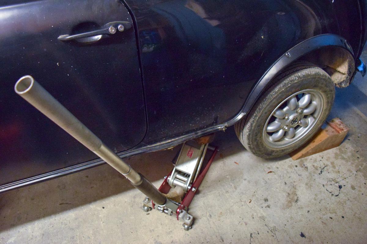 Levage de la Mini et dépose des roues