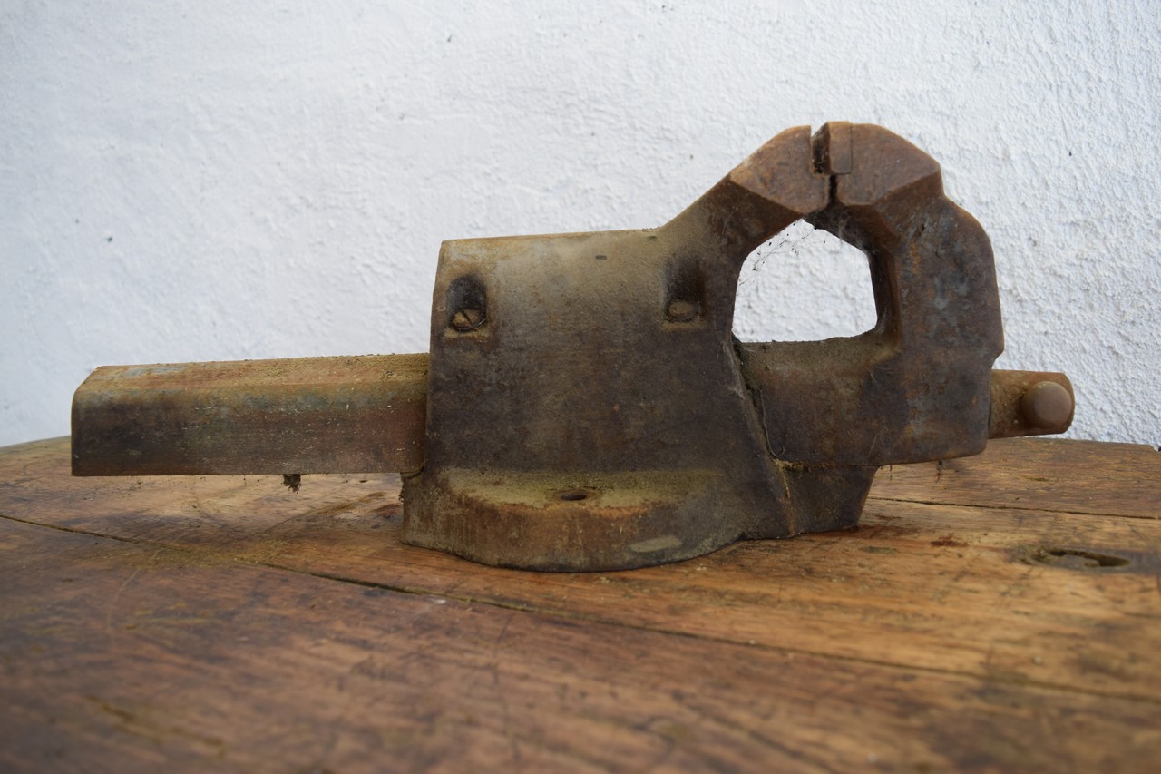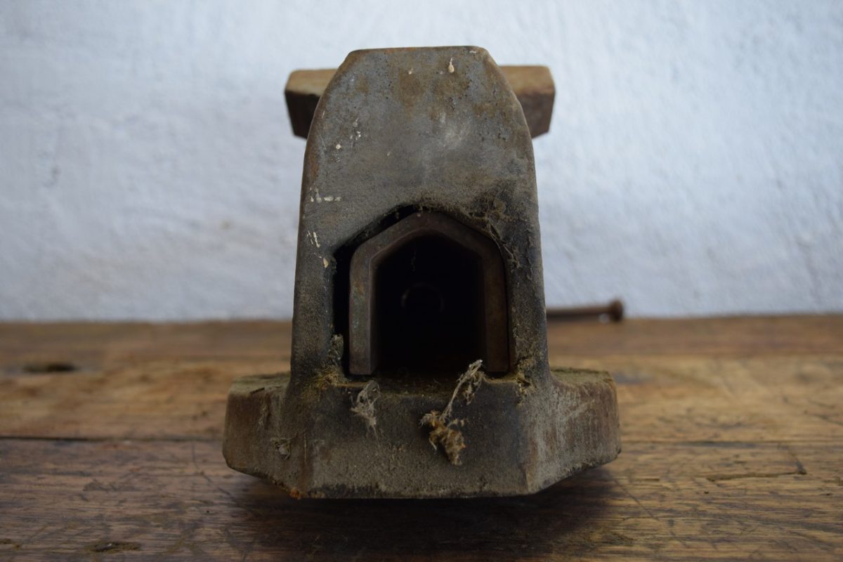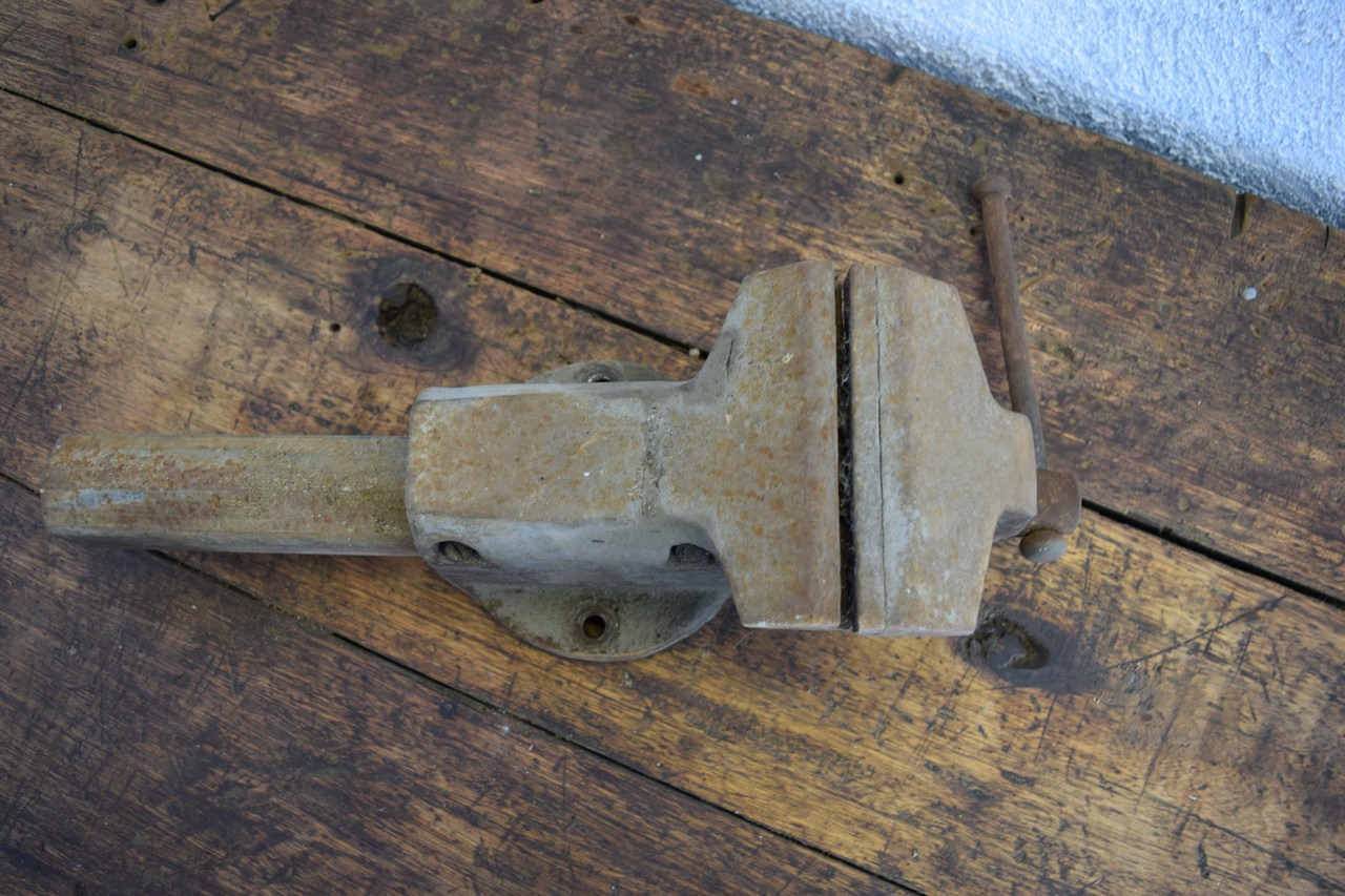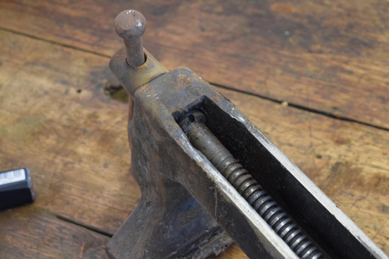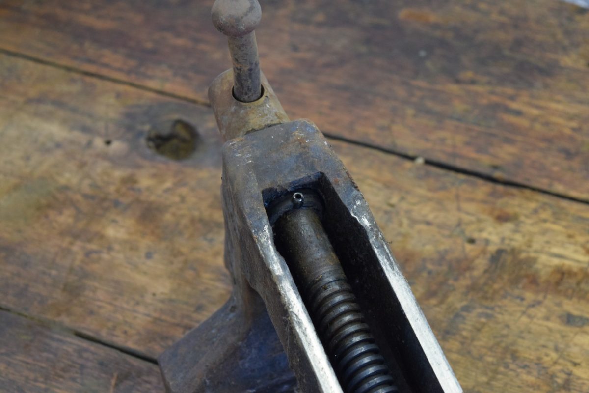 Malgré son âge et le fait qu’il n’ait pas été utilisé depuis longtemps, l’étau était malgré tout stocké sous abri et n’est donc, par chance, pas bloqué.