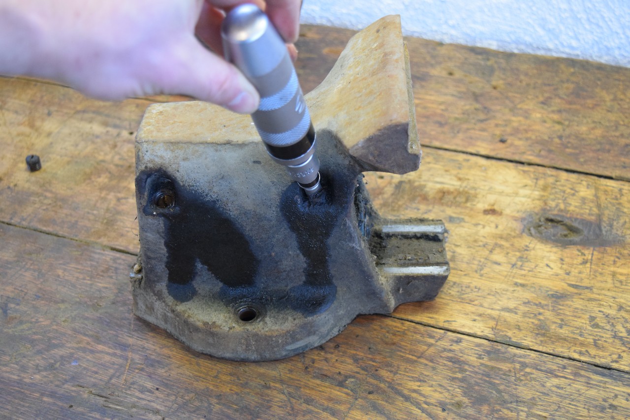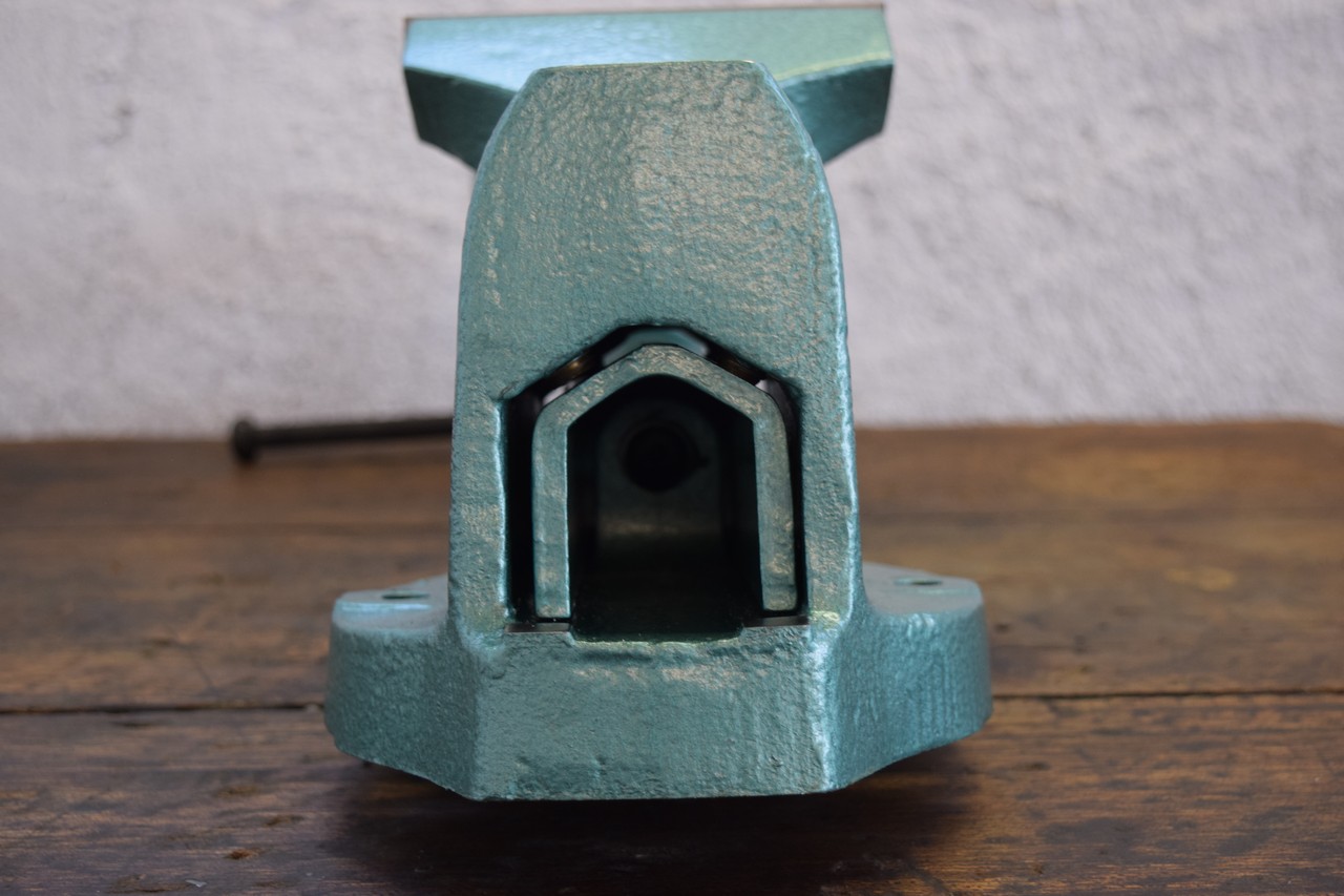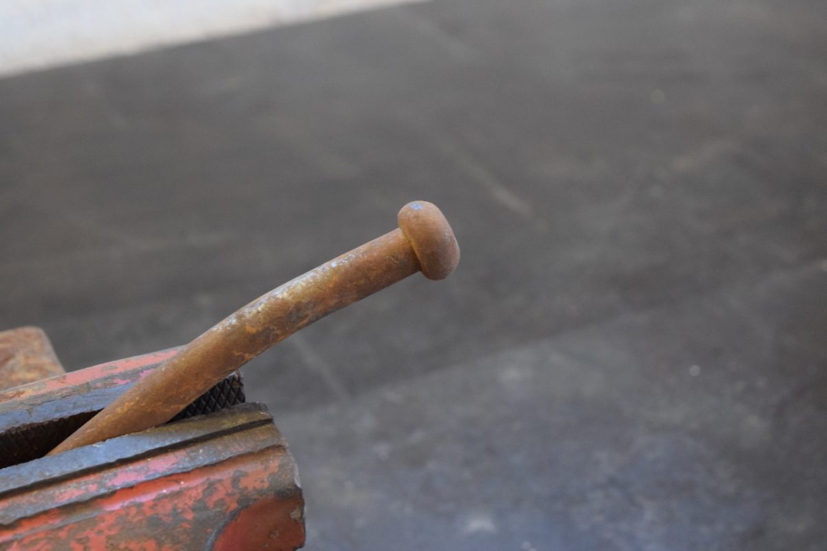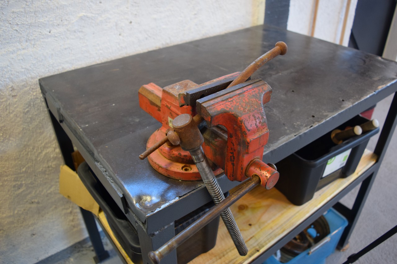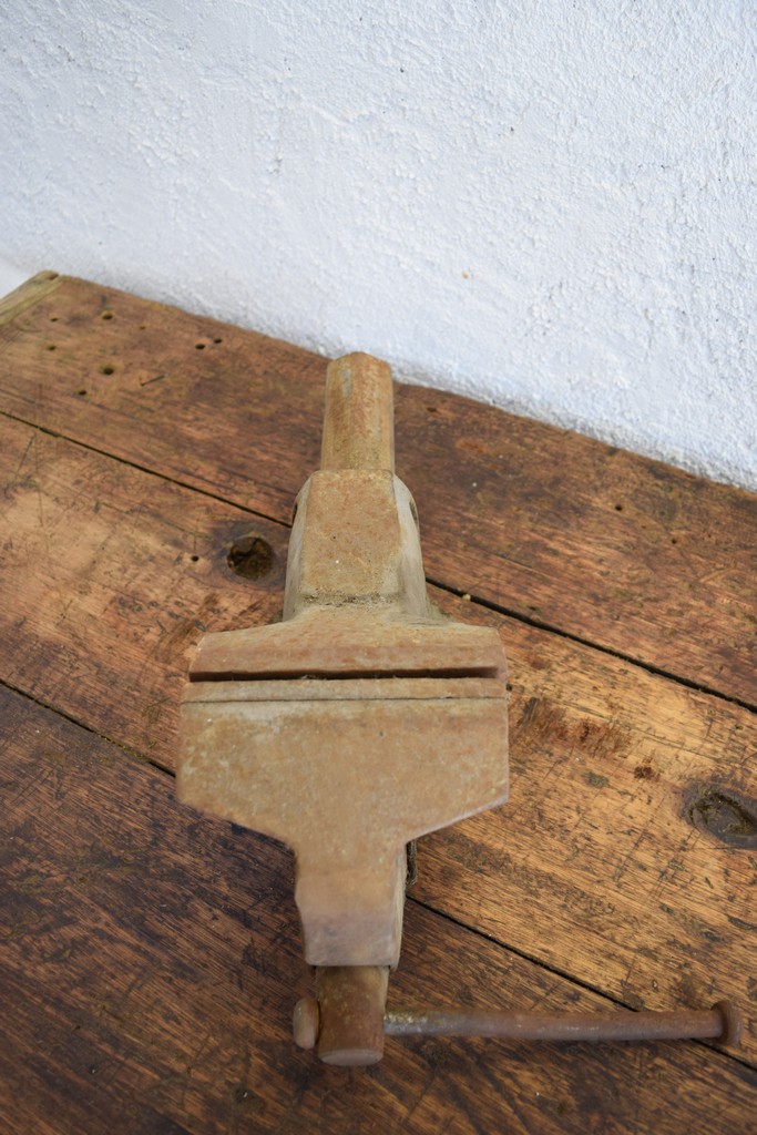 Malgré son âge et le fait qu’il n’ait pas été utilisé depuis longtemps, l’étau était malgré tout stocké sous abri et n’est donc, par chance, pas bloqué.