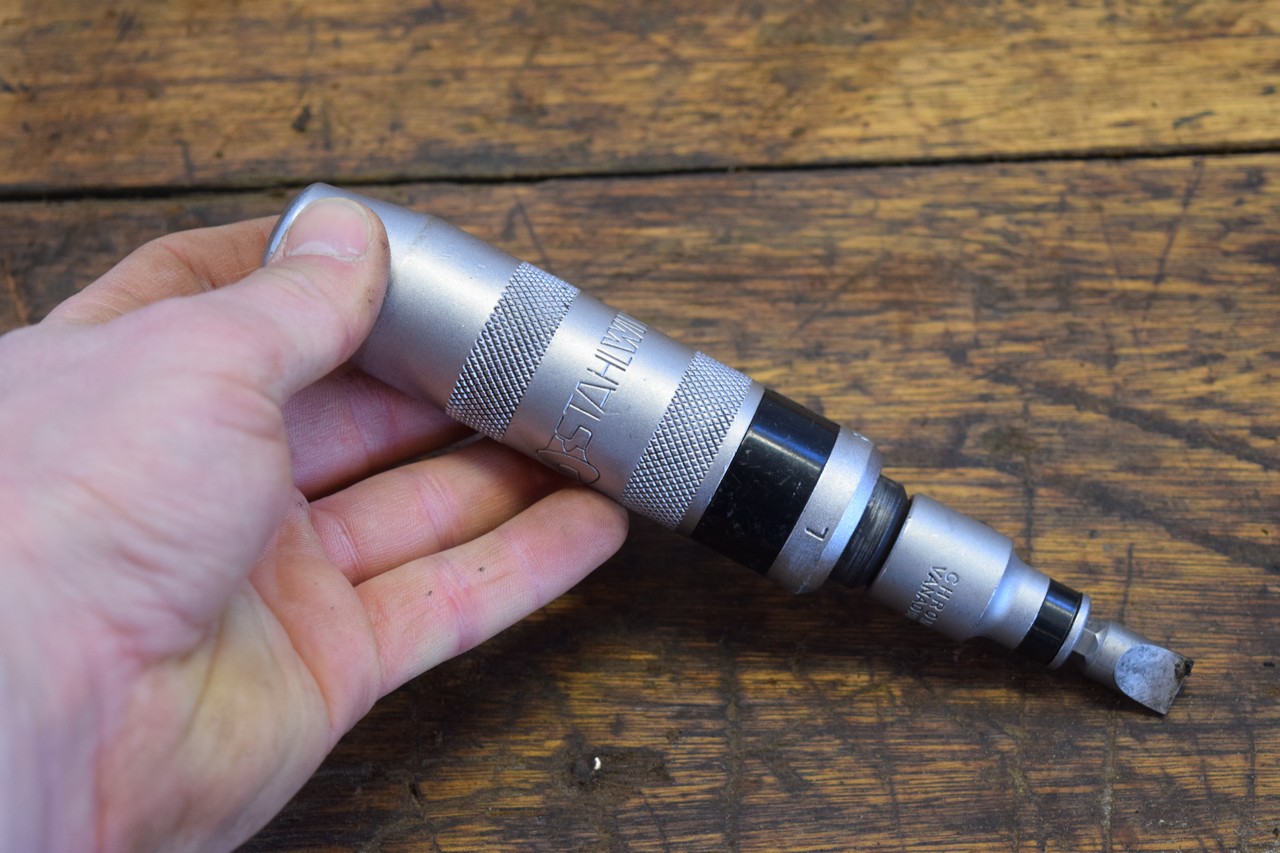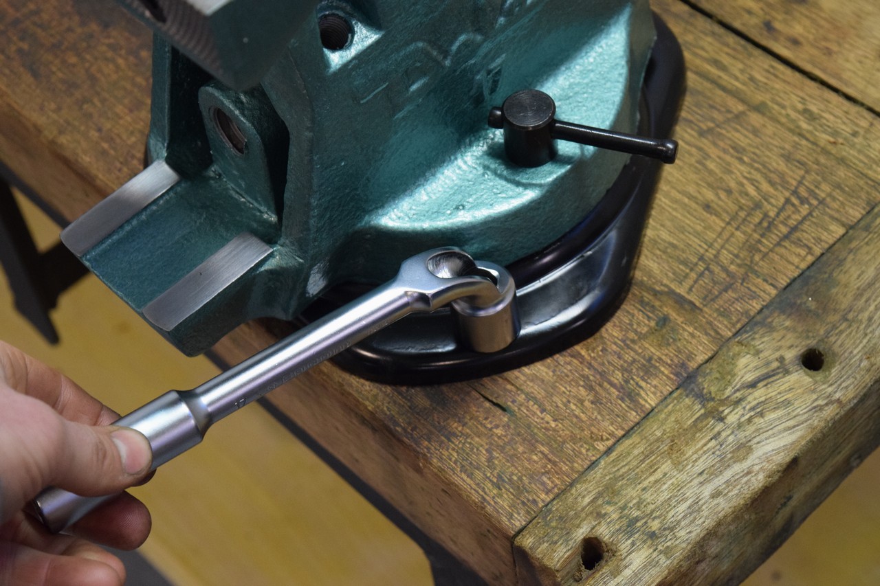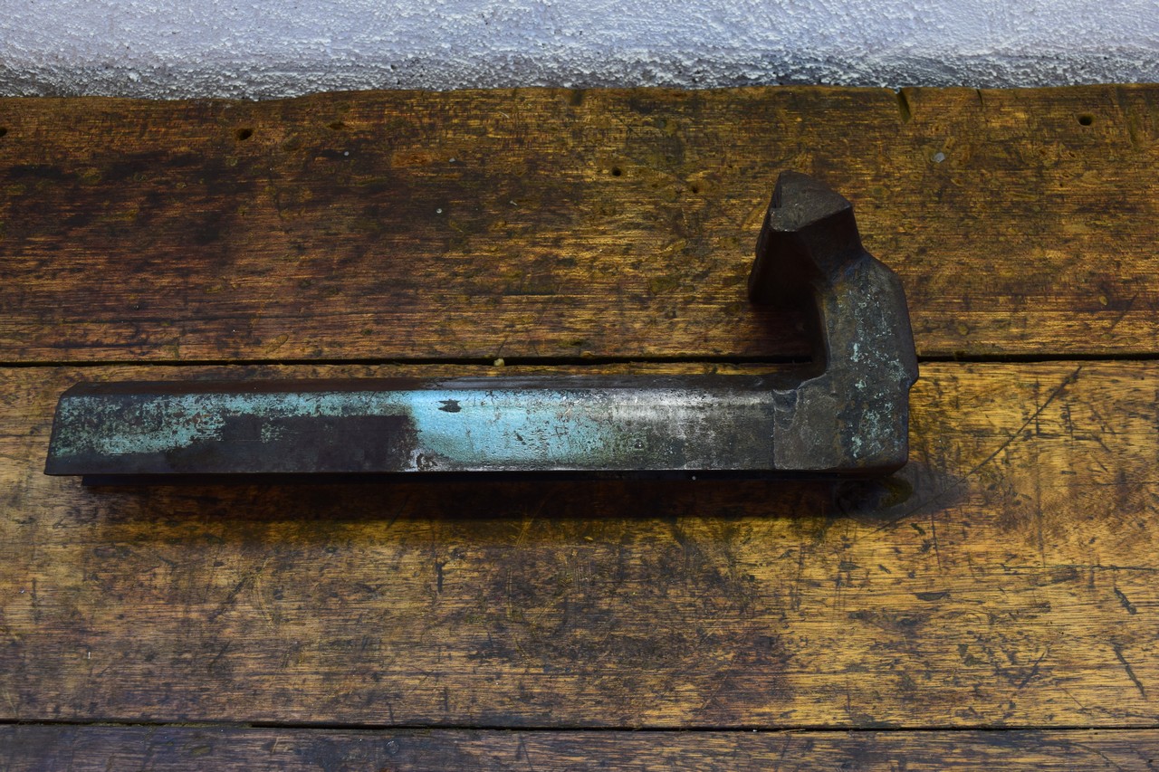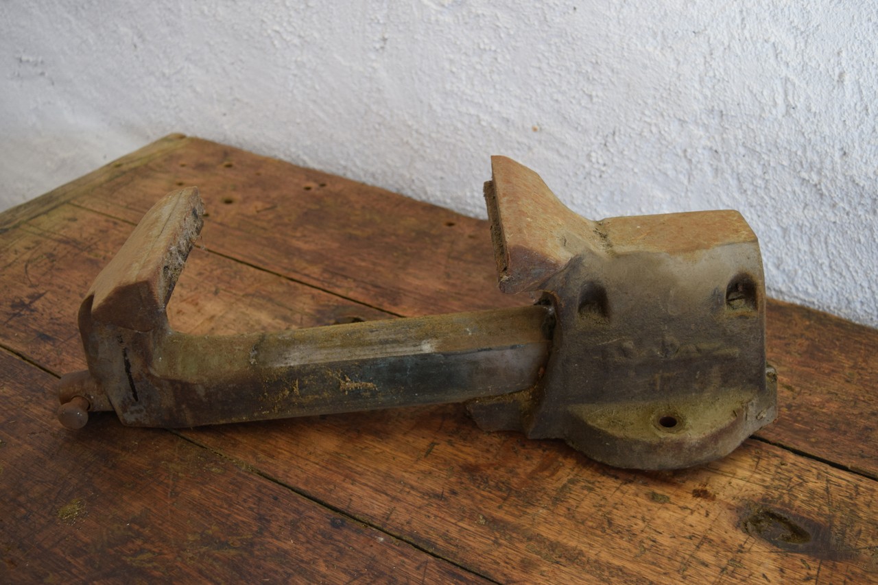 Malgré son âge et le fait qu’il n’ait pas été utilisé depuis longtemps, l’étau était malgré tout stocké sous abri et n’est donc, par chance, pas bloqué.