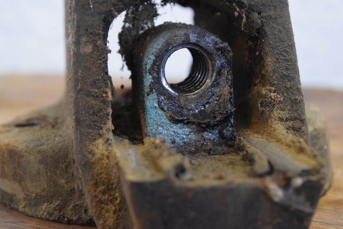Ce n’est pas beaucoup mieux concernant la tige de serrage, recouverte de rouille mais surtout complètement tordue !
