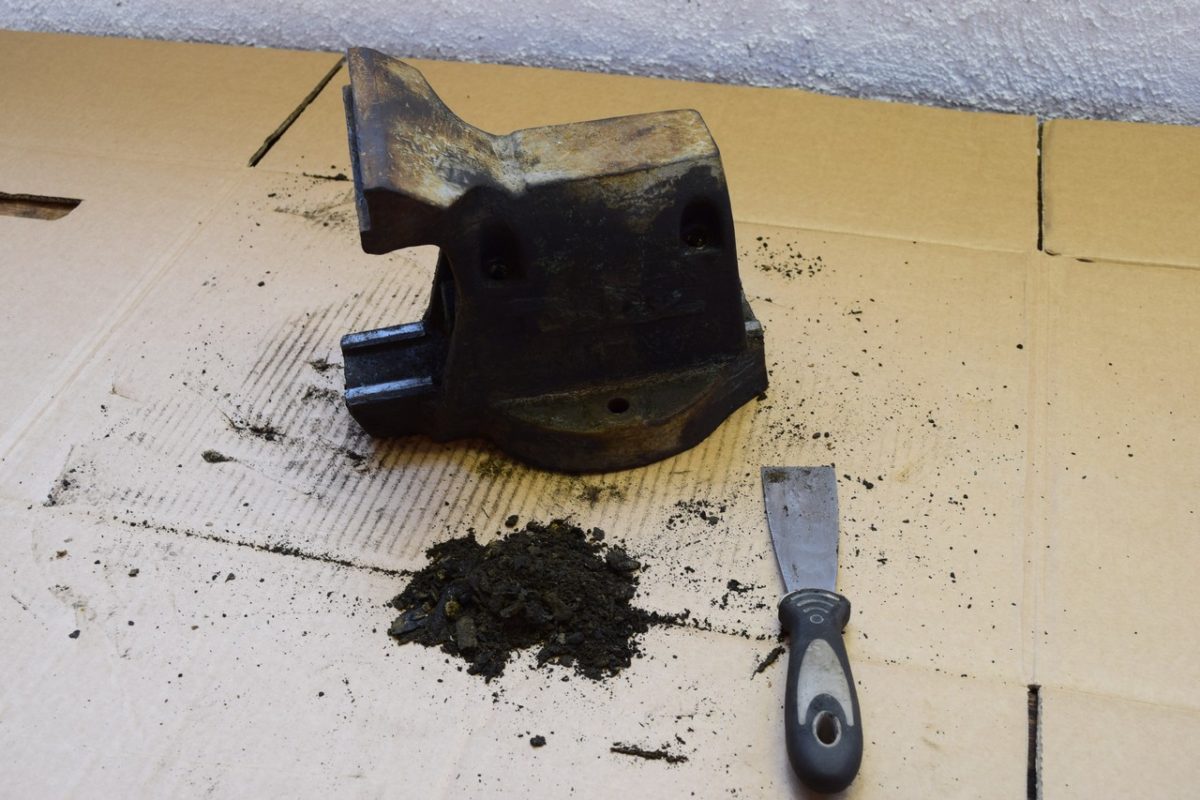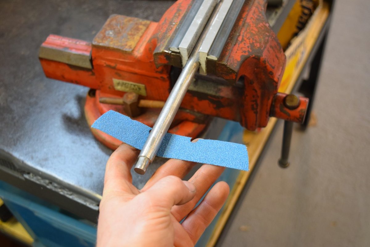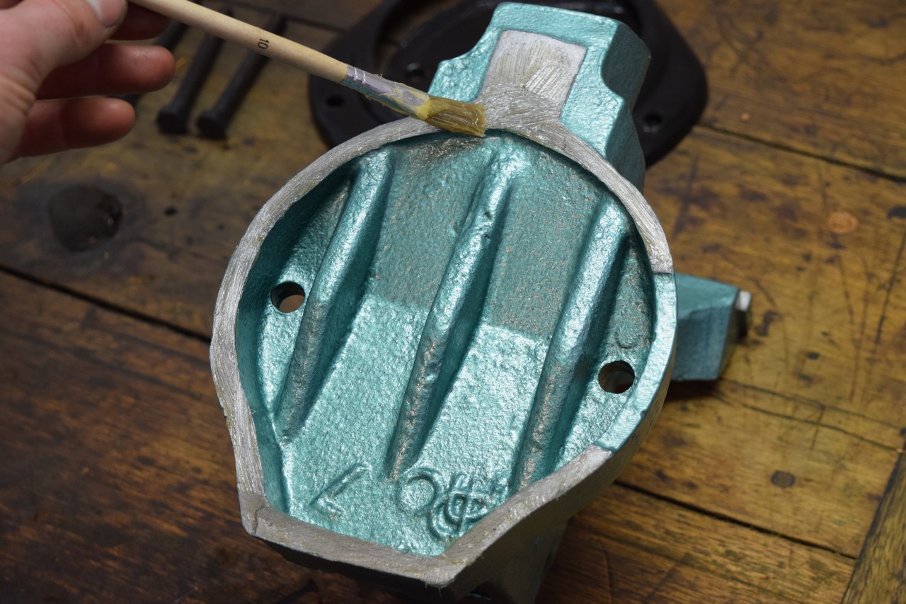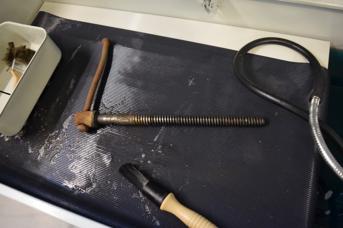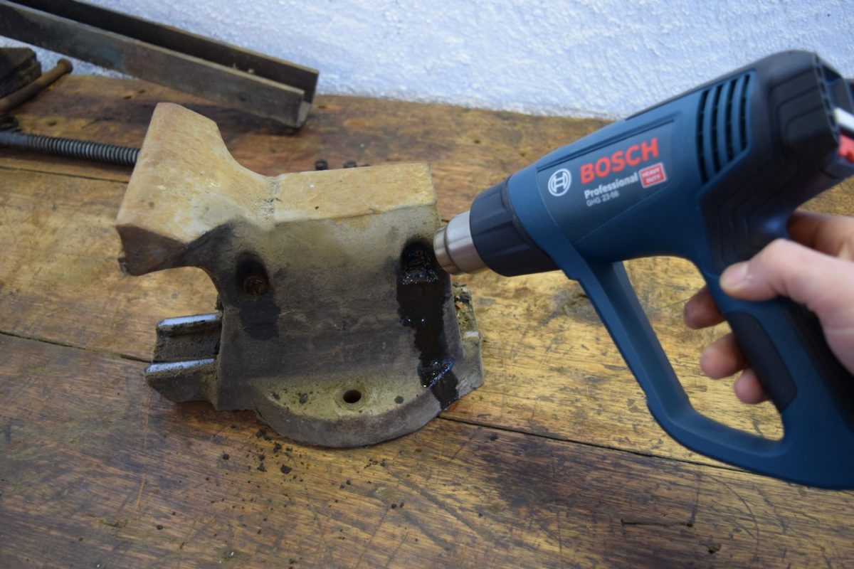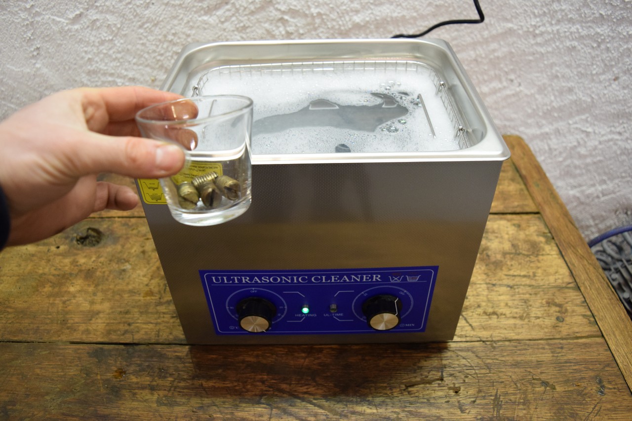 L’étau va être entièrement sablé. Pour ça, il ne doit plus rester la moindre trace de gras. C’est parti pour un bon dégraissage !