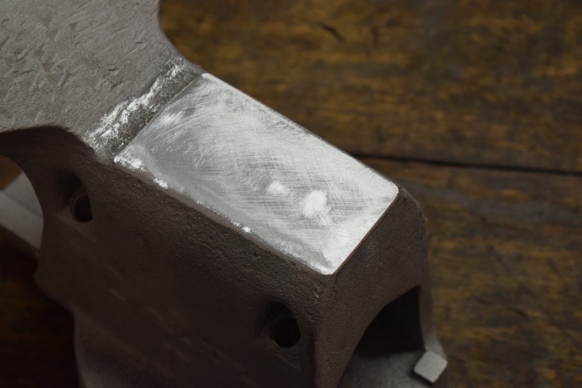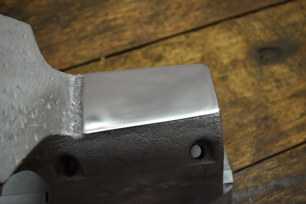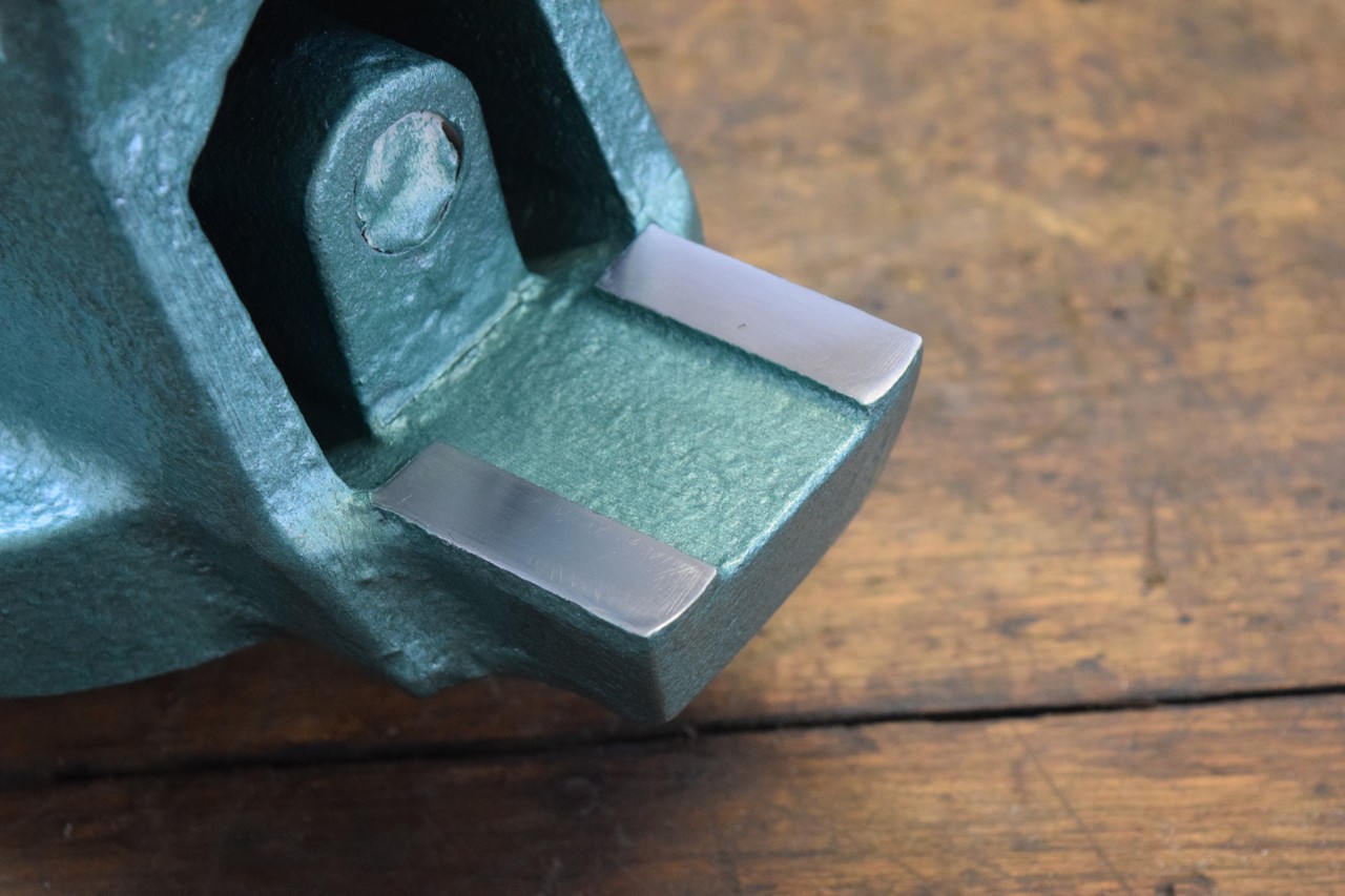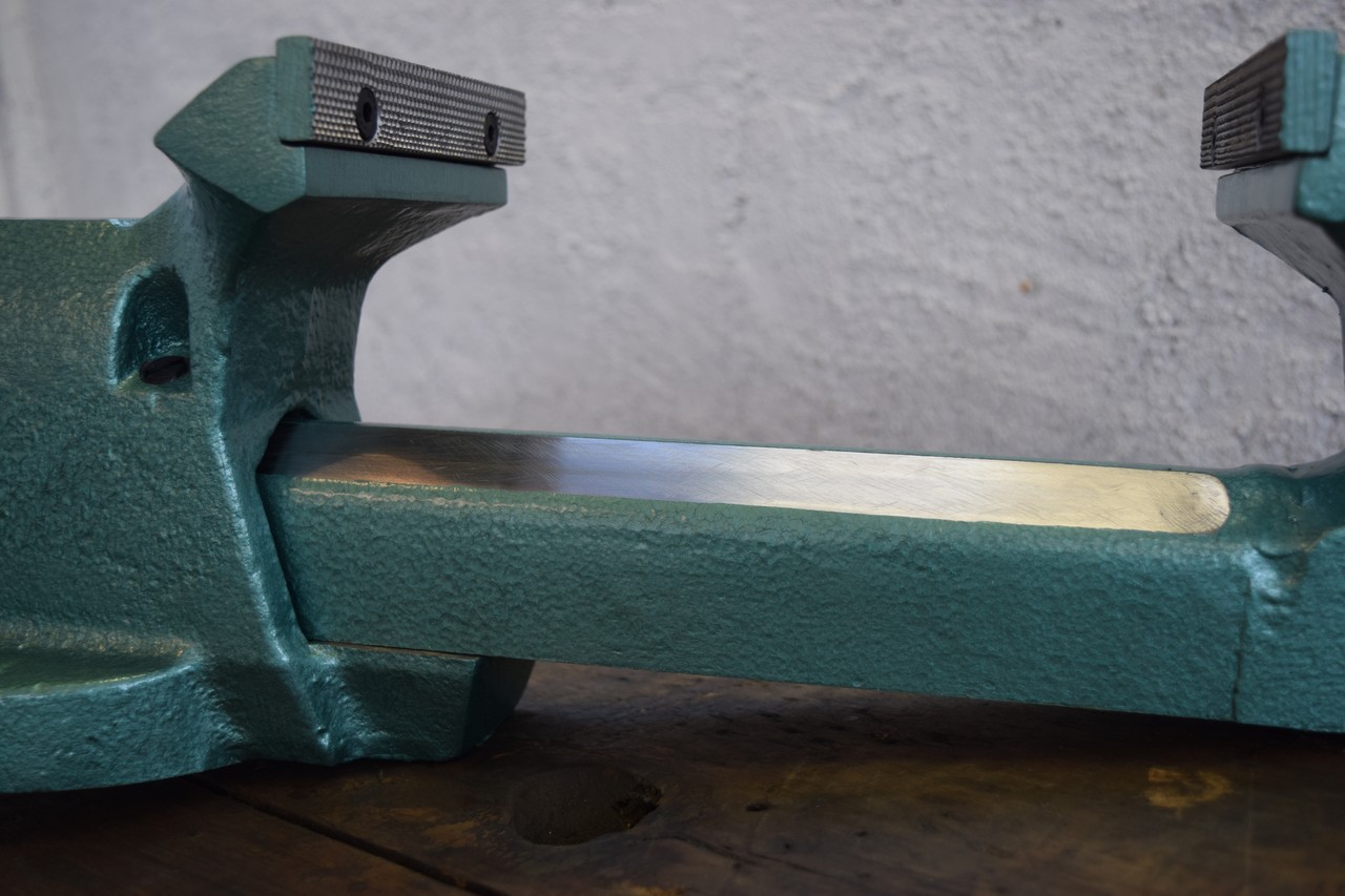 Je ne veux pas non plus une surface poli “miroir”, ça reste une enclume et je restaure cet étau dans le but de m’en servir tous les jours à l’atelier, pas pour le mettre en vitrine ! 🙂