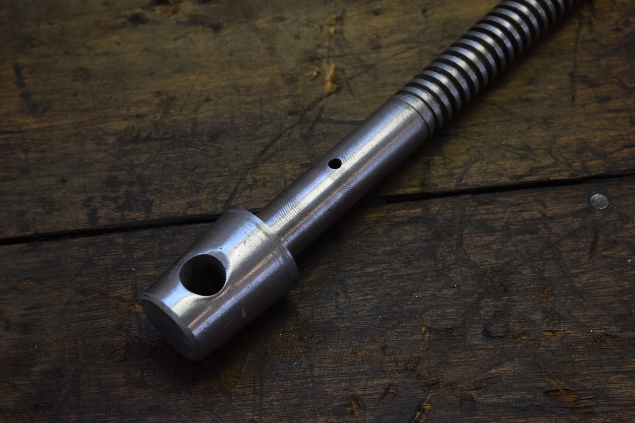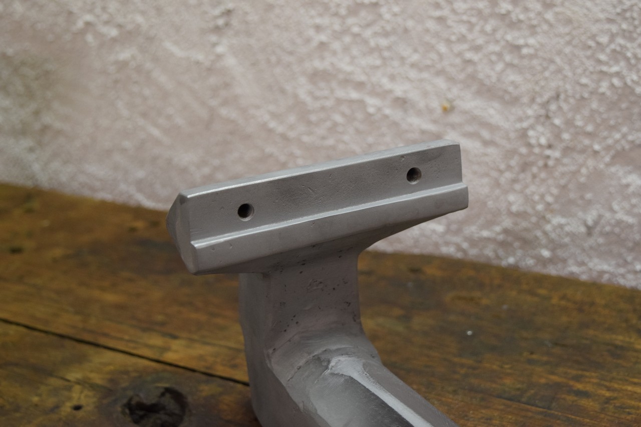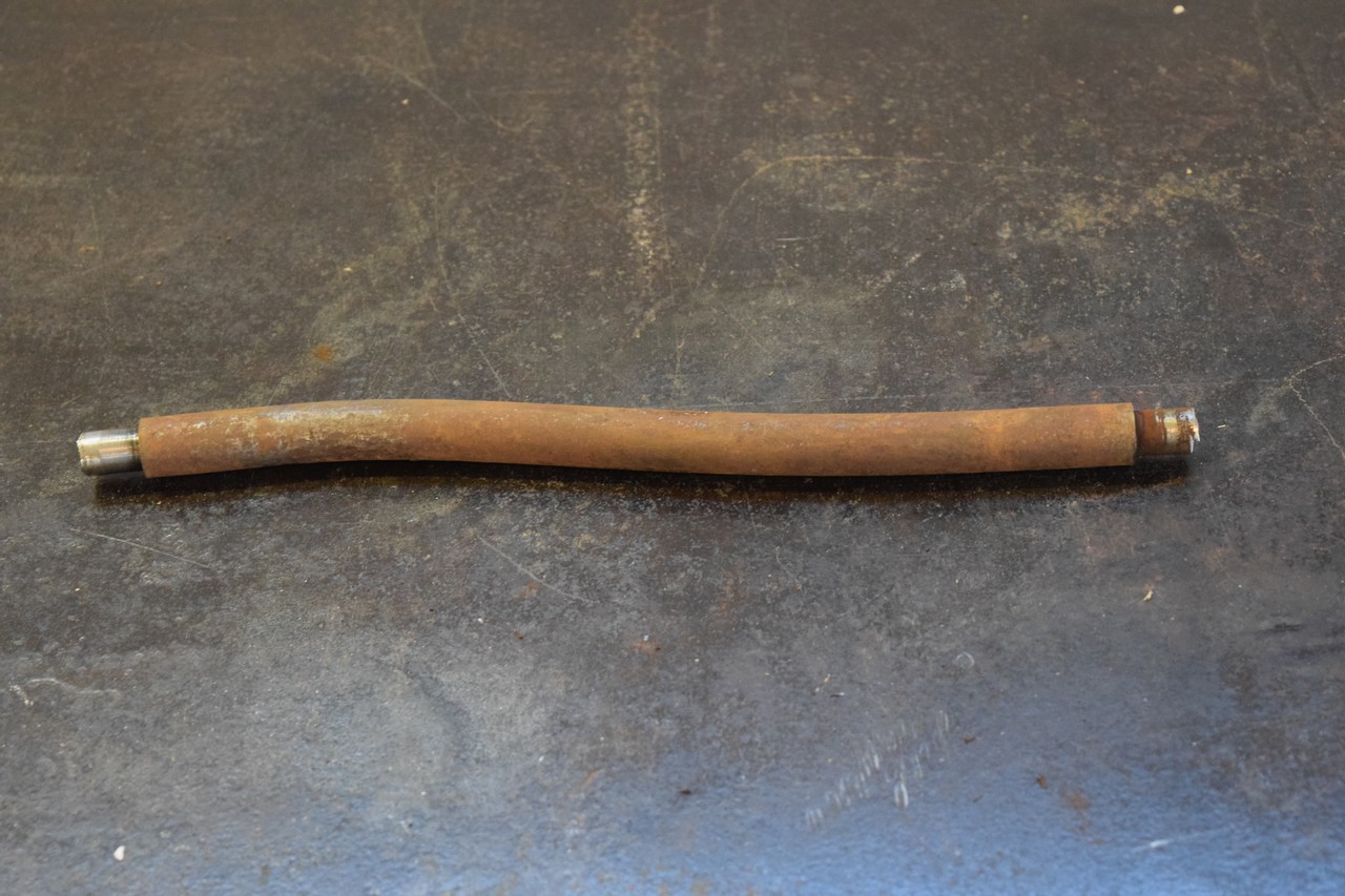 Merci Tristan, la tige du mien est parfaitement droite, juste rouillée. Comme je ne prévois pas de noirci, je vais en rester à un brossage/ponçage le plus clean possible. Le décapage n’a révélé que peu de marques en ce qui me concerne, à part un petit trou – d’usine probablement – où l’ouvrier en charge du perçage des fixations des mors avait été un peu trop loin (on l’entend presque jurer : “ah merde!”…).