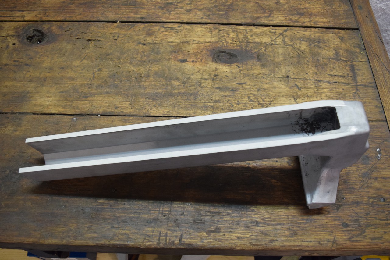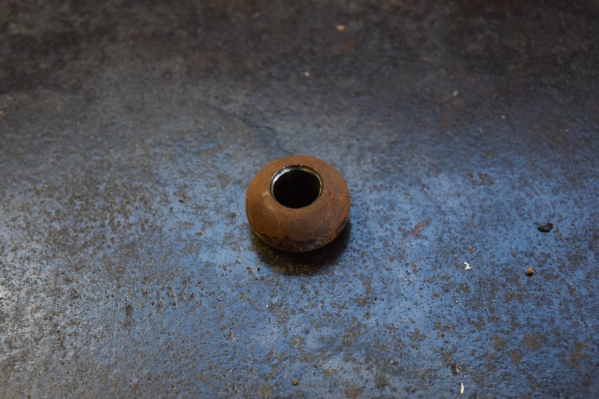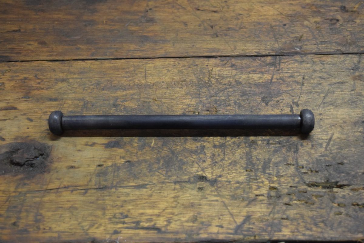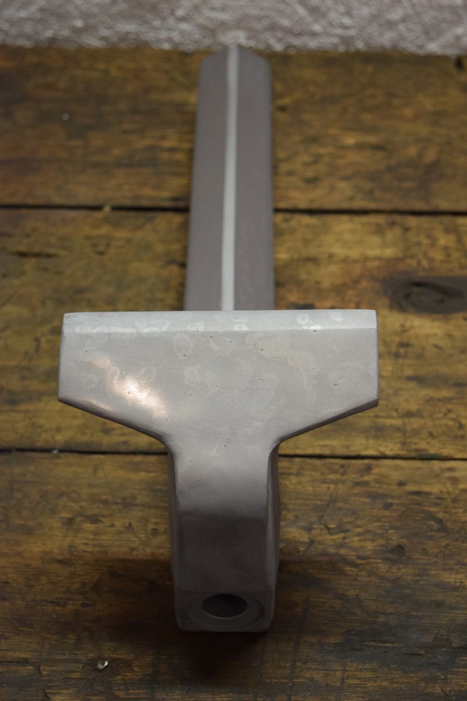 Merci Tristan, la tige du mien est parfaitement droite, juste rouillée. Comme je ne prévois pas de noirci, je vais en rester à un brossage/ponçage le plus clean possible. Le décapage n’a révélé que peu de marques en ce qui me concerne, à part un petit trou – d’usine probablement – où l’ouvrier en charge du perçage des fixations des mors avait été un peu trop loin (on l’entend presque jurer : “ah merde!”…).