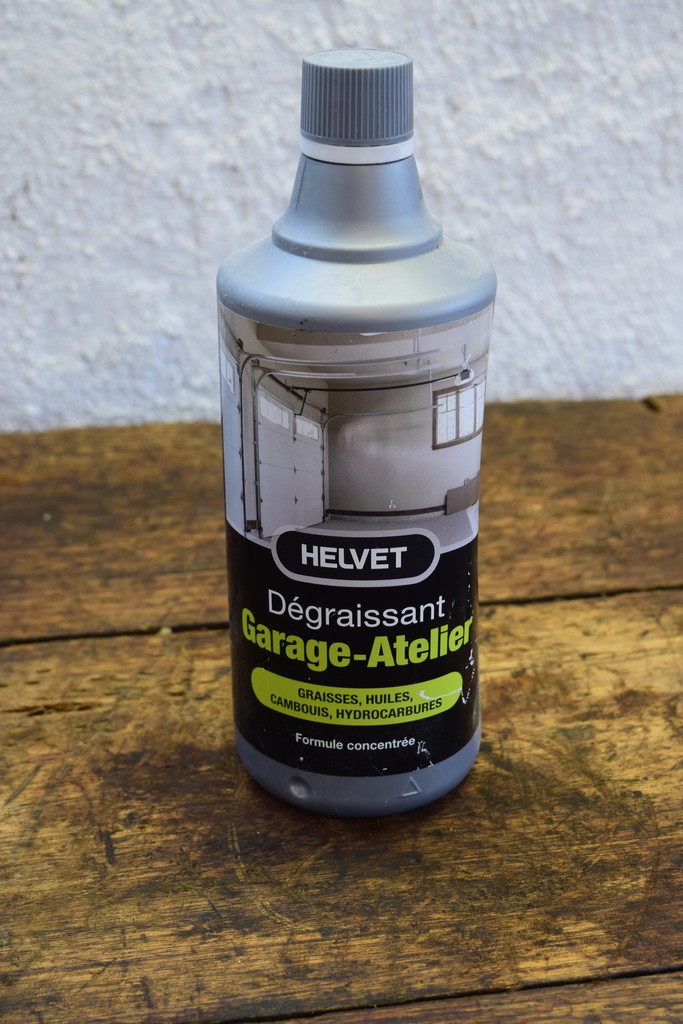 J’utilise ensuite un dégraissant spécial cambouis pour garage, que je trouve très efficace.