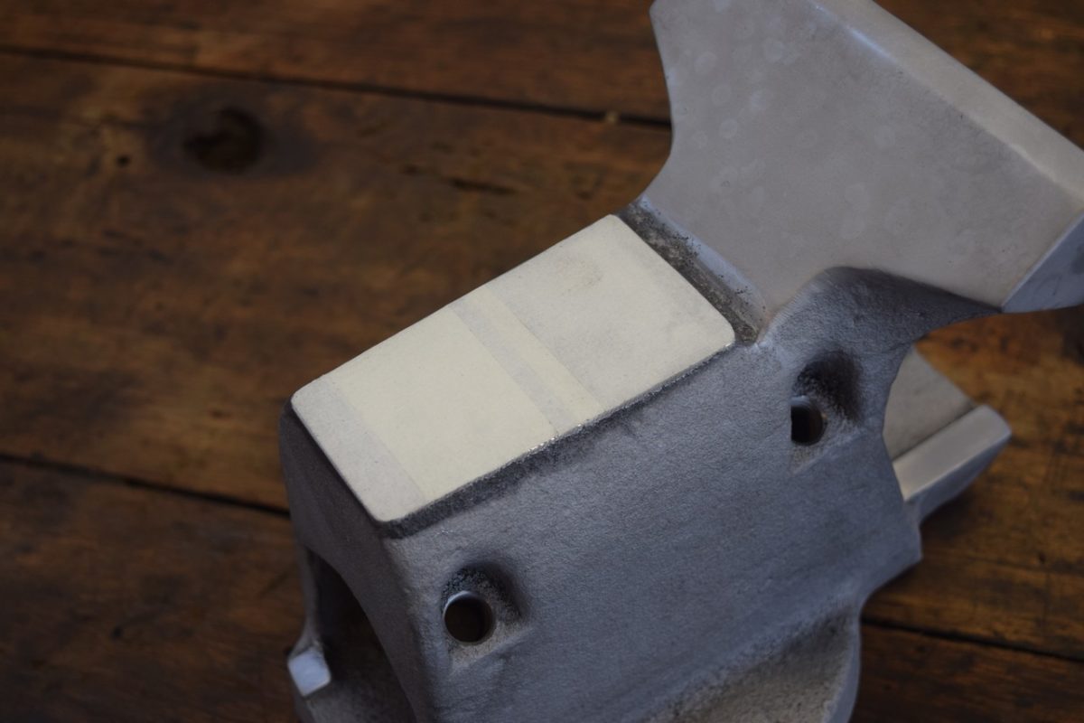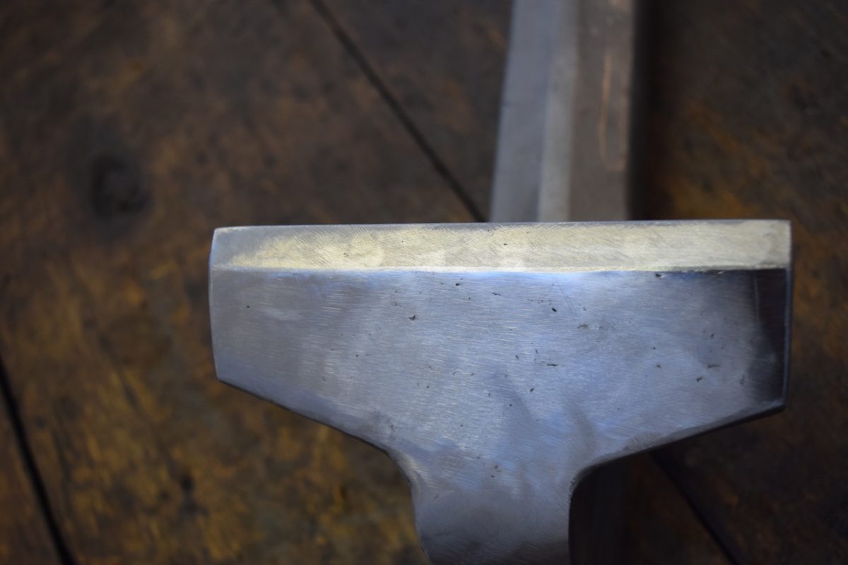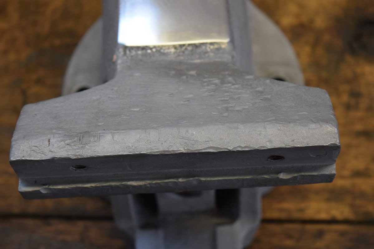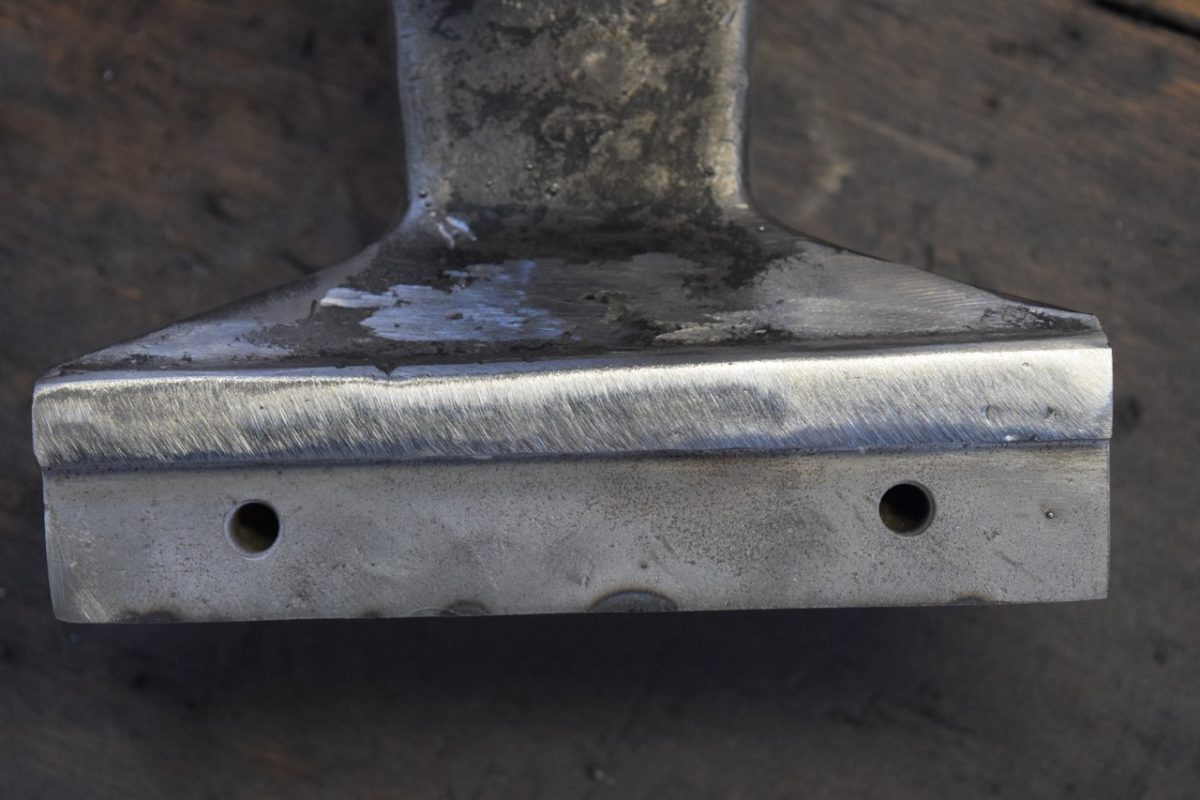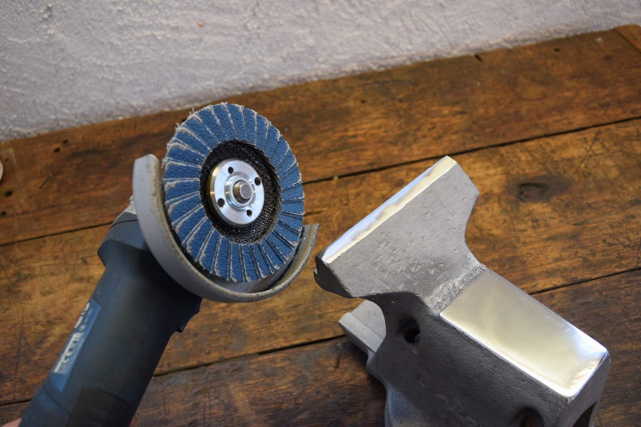 L’enclume étant pleine de coups de marteaux, je décide d’enlever un peu de matière pour lui refaire une surface lisse et parfaitement plane.